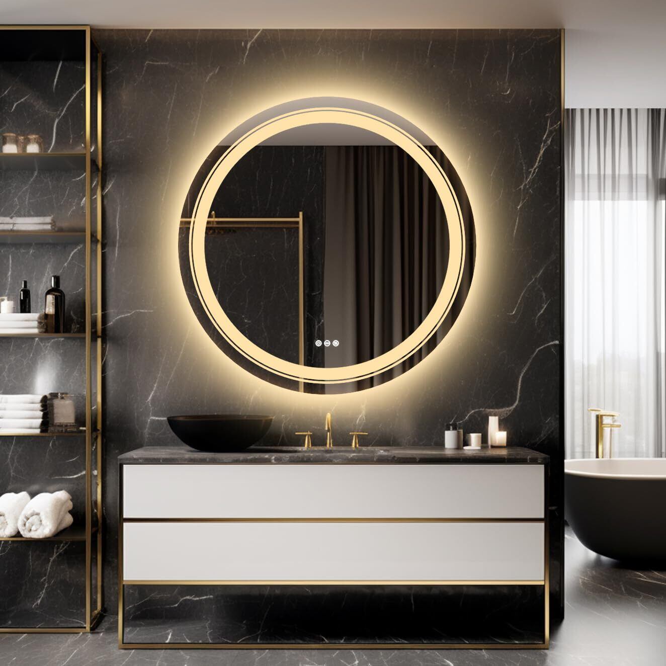 Susire 洗面台 鏡 丸 ledライト付き 大型 女優ミラー 壁掛け鏡 洗面所 トイレ 飛散防止 led浴室の鏡 曇り止め おしゃれ 円形 80cm
