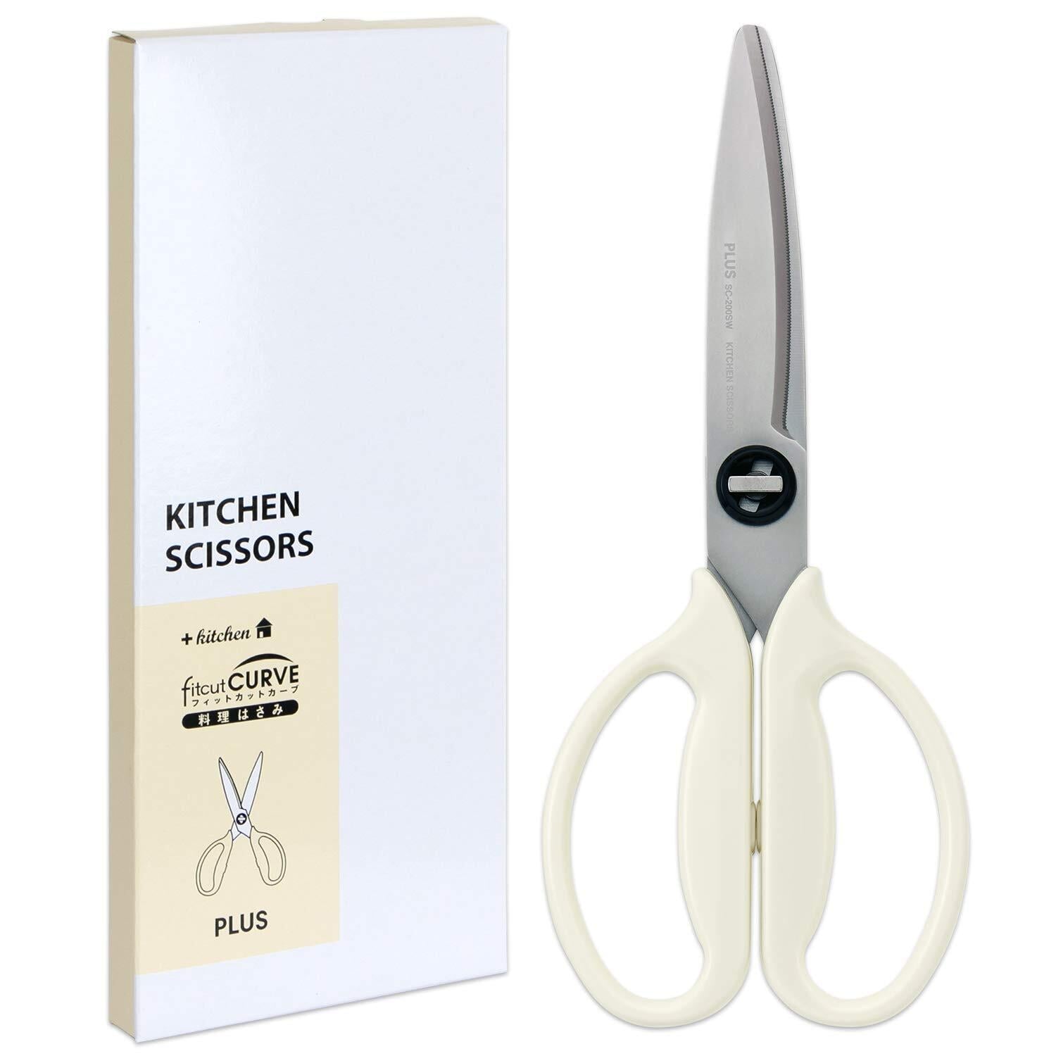 プラス キッチンバサミ 料理ばさみ 分解 洗える 丸洗い 食洗機対応 ストレスのない切れ味 ステンレス フィットカットカーブ アイボリーホワイト 紙箱包装 35731