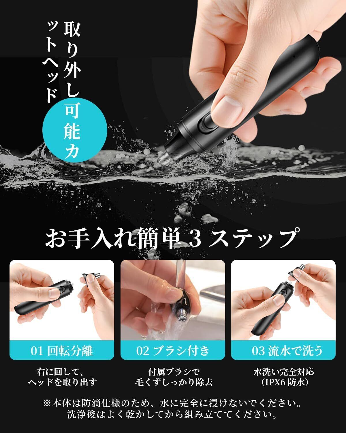 ✨【IPX6防水&お手入れが簡単】電動鼻毛剃りは防水できます。鼻毛切りの先端は、外して直接にすすぐことができ、残留物や細菌の繁殖を防ぎ、いつでも清潔に保つことができます。鼻毛カッター 充電式はヘッドを取り外して洗うこともできます。 ユニークな双頭清掃ブラシは、鼻毛カッター usb充電式を簡単にお手入れができながら、鼻毛カッターの清潔を保つことができます。
