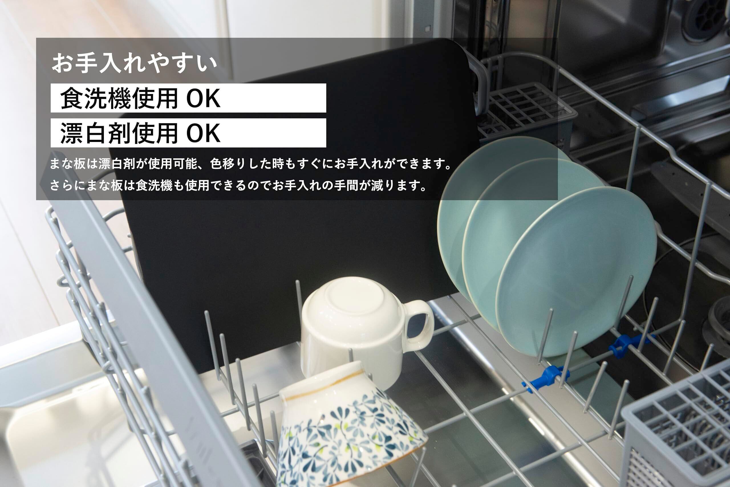 【食洗機対応】使用温度:-30℃~130℃、食洗機完全対応。熱湯消毒OK・塩素漂白可、お手入れラクラクなまな板。水捌けが良い、洗った後フックにかけて、三分だけ速く乾く。そこですぐ収納しても、衛生面上の心配がないです。●食洗機使用の前に、まないたのサイズを考えて、入れるどうかが事前に確認してください。