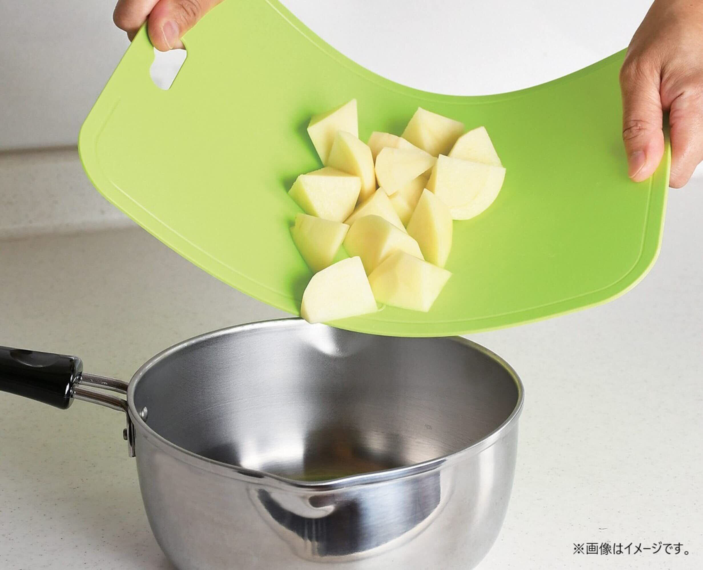 柔らかな素材なので、切った食材をそのまま鍋へ。刻んだ食材を移すのにも便利です。