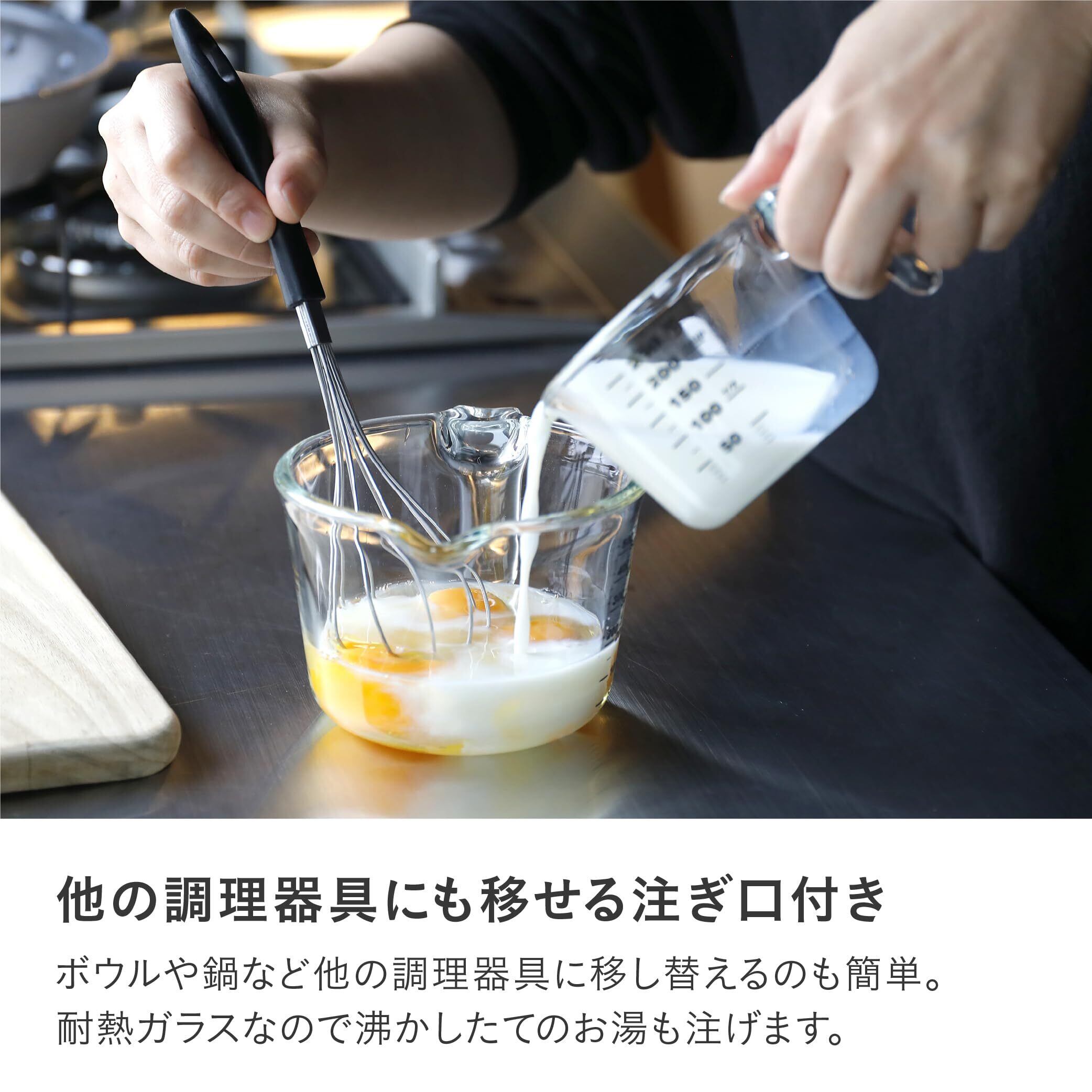 「量る」「混ぜる」「温める」「注ぐ」面倒な移し替えをせず、これひとつで完結できる「耐熱ガラス計量カップ」洗い物も減らせるので調理のストレスが軽減されます。忙しい朝や夕食準備がもっとラクに、もっと楽しくなります
