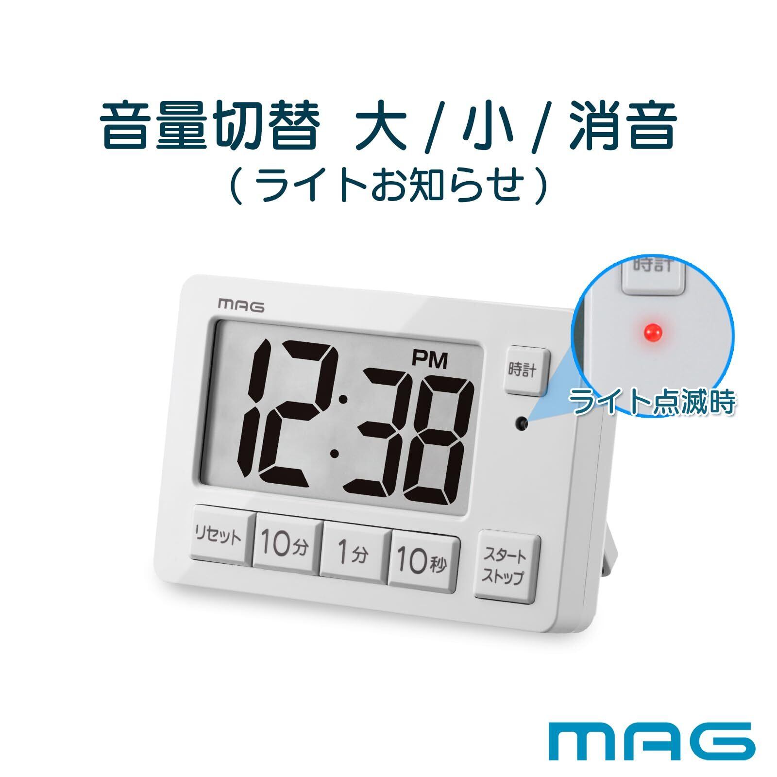 MAG(マグ) タイマー キッチン 勉強 学習 会議 音量切り替え 消音 無音 ライト デジタル 時計表示 置き掛け兼用 マグネット 磁石 ライトグレー ヒカルン TM-608A LGY-Z ノア精密