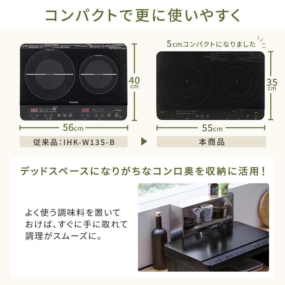 【新着商品】アイリスオーヤマ 2口 IHクッキングヒーター1400W 100V IHコンロ 工事不要(幅55cm×奥行35cm) 脚付き(18cm) 揚げ物 タイマー搭載 セーフティ機能 簡単お手入れ ブラック IHK-WT41SAZ-B | SmartLiving+