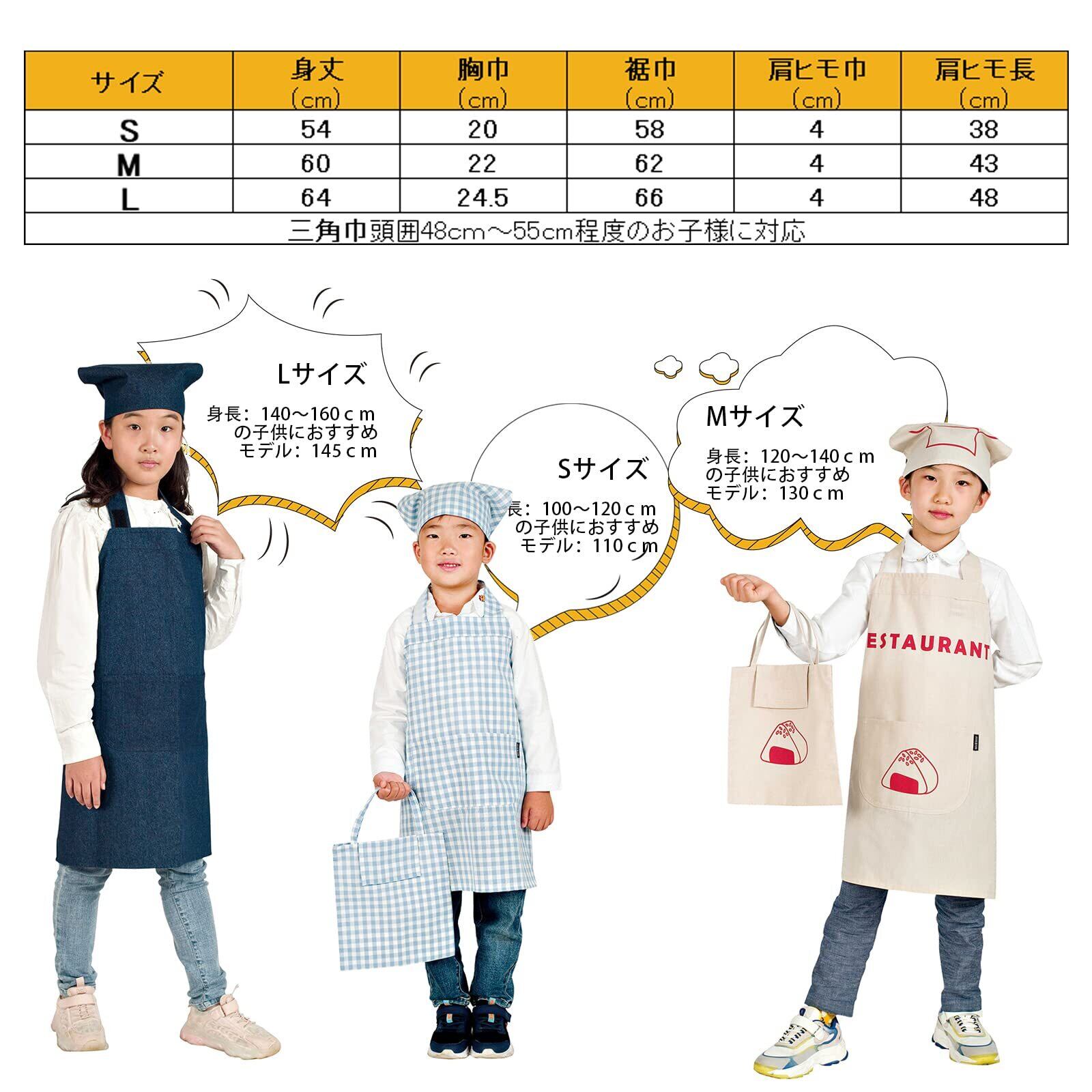[JACKIE&YORK] エプロン 子供 キッズ 三角巾 収納バッグ付き 着脱簡単 小学生 男女兼用 かわいい シンプル ホコリが付きにくい
