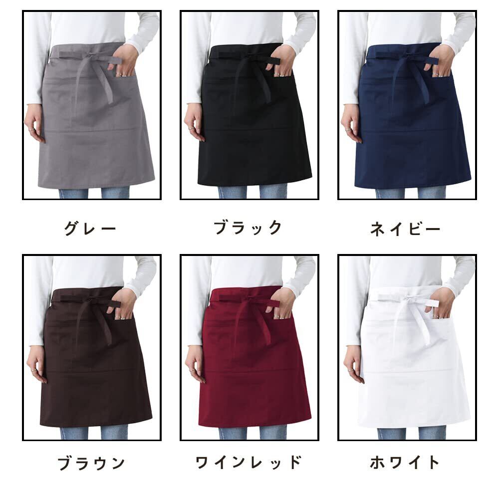 [囲物誌] エプロン ショート 無地前掛け 腰下エプロン レディース メンズ シワになりにくい ホコリが付きにくい 男女兼用 シェフ 店員 台所調理用 レストラン 喫茶店