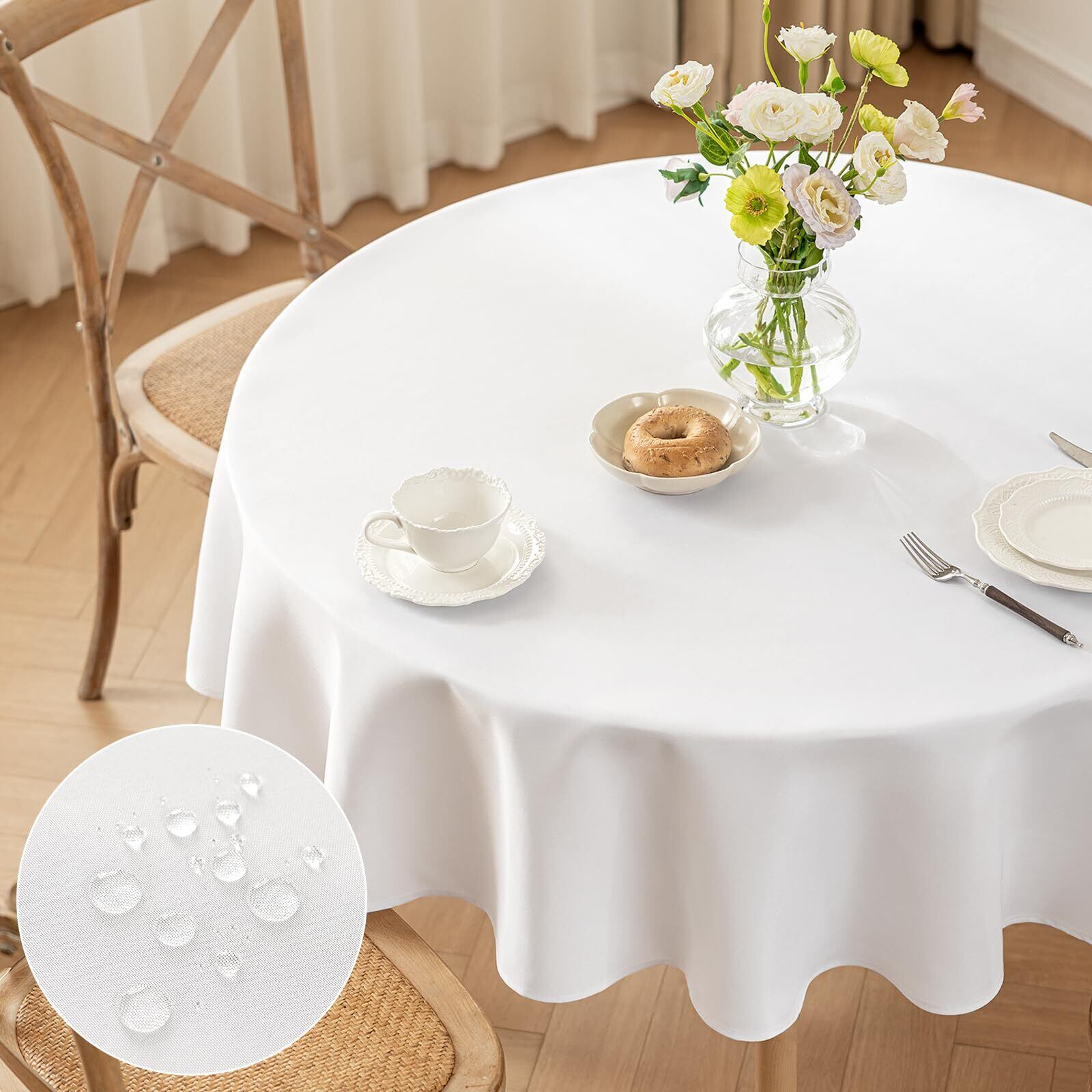AooHome テーブルクロス 丸 円形 撥水 北欧 無地 テーブルカバー 長方形 布製 シンプル ポリエステル製 テーブルマット 丸洗い 直径120cm (ホワイト)