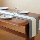 【特徴】センターに白が入ったシンプルモダンデザイン。スタイリッシュな、和モダン、ホテルライクなどお洒落な雰囲気にぴったりなテーブルランナー。やさしい手触り。柔らかく、生地に厚みがあり高級感があります。一年中使用インテリアに馴染むデザインです。
