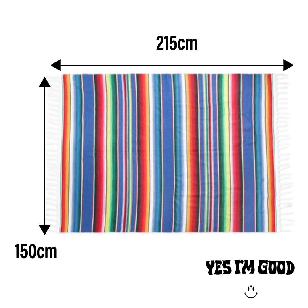 【数量限定】[YES I’M GOOD]メキシカン カラー テーブルランナー サラペ メキシコ エスニック マルチクロス ヒッピー ジプシー BOHO ショップ インテリア ラグ 薄手 綿 コットン キャンプ アウトドア カラフル ハッピー レインボー クリスマス ハロウィン パーティー (ターコイズブルー, 150*215)