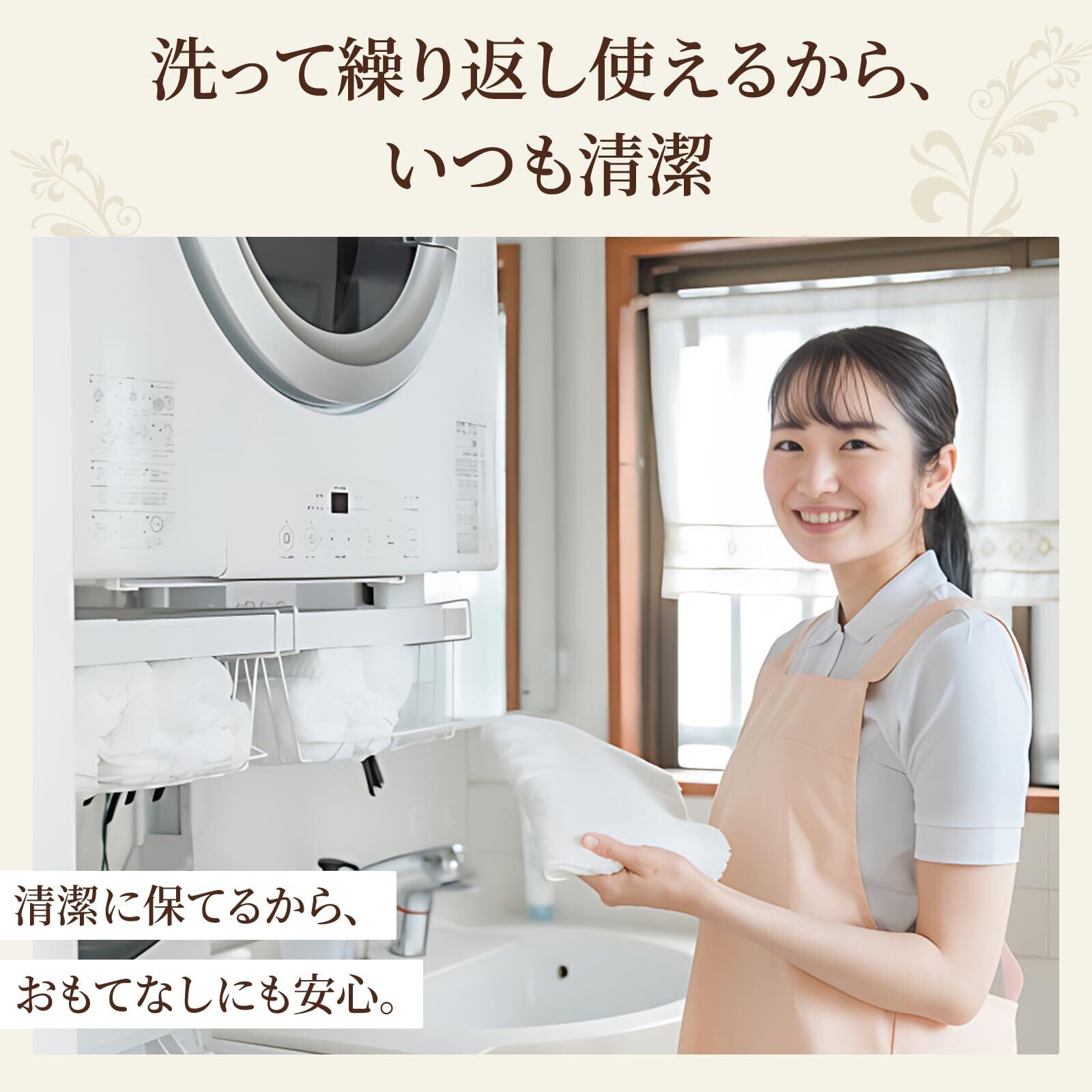 【繰り返し使えるエコで経済的】環境にやさしくコストパフォーマンスも◎。家庭で気軽に洗濯でき、乾きやすいのも嬉しいポイント。日常使いからおもてなしまで、幅広く対応します。