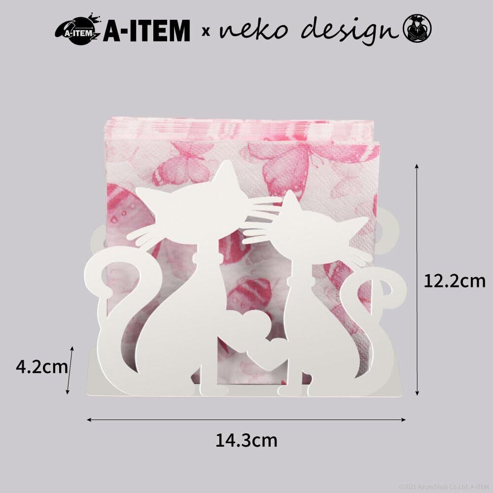 A-ITEM × neko design 猫 ナプキンホルダー 卓上 ペーパーナプキンスタンド 立て型 (ホワイト)