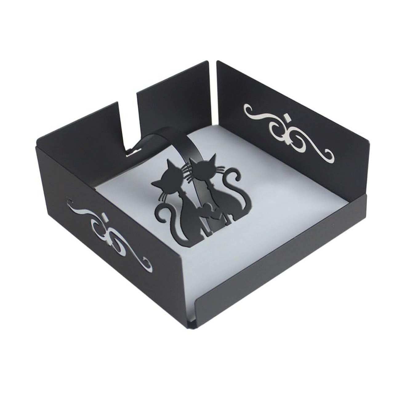 【猫モチーフのデザイン】寄り添う2匹の猫シルエットが可愛いナプキンホルダー。シンプルながら温かみのあるデザインで、毎日の食卓を癒しの空間に