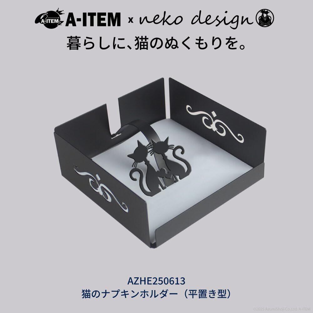 A-ITEM × neko design 猫のナプキンホルダー 平置き型 ナプキン立て (ブラック)