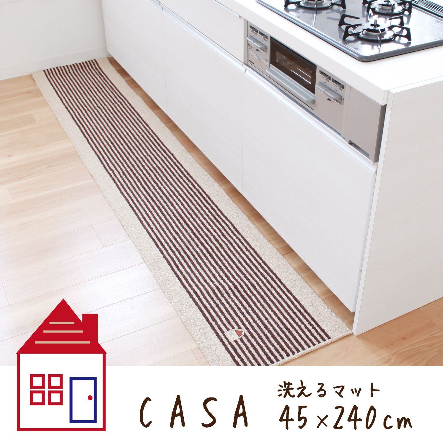 オカ カーサ キッチンマット 約45cm×240cm【ブラウン】(台所マット ボーダー CASA)