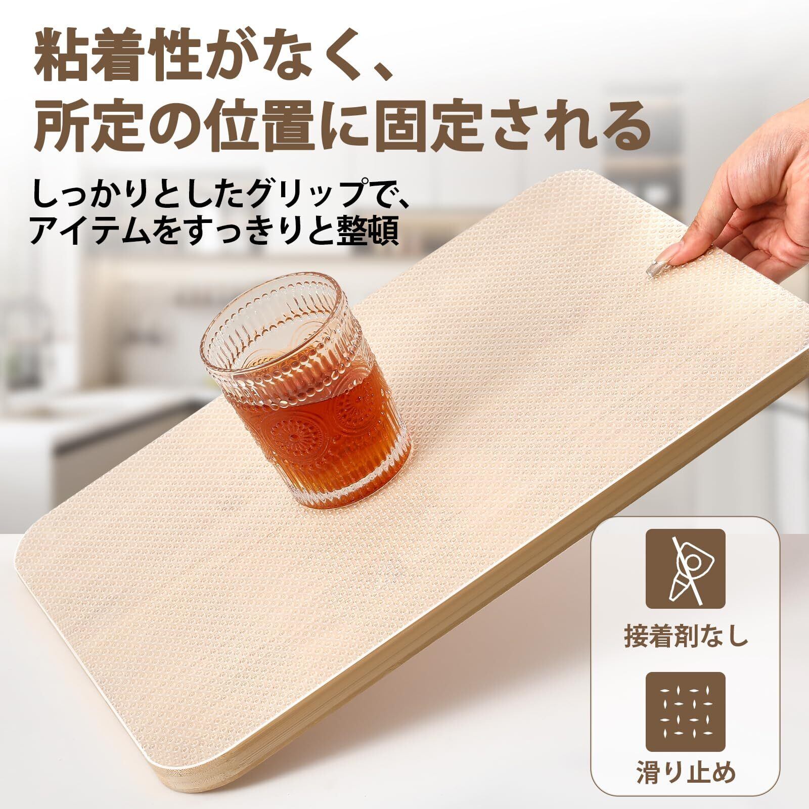 【滑り止め・賃貸OK】粘着剤ゼロの滑り止め設計。食器や調味料がズレず、収納トレーや冷蔵庫内でもしっかり位置を保持。両面とも非粘着性の素材なので、ライナーを簡単に取り出して掃除することができます。 食器棚シートは、虫、油、汚れと台所用品の滑りを防ぎ、カビの発生を有効に予防できます。台所用品や本やなどの品物の保護に役立たちます
