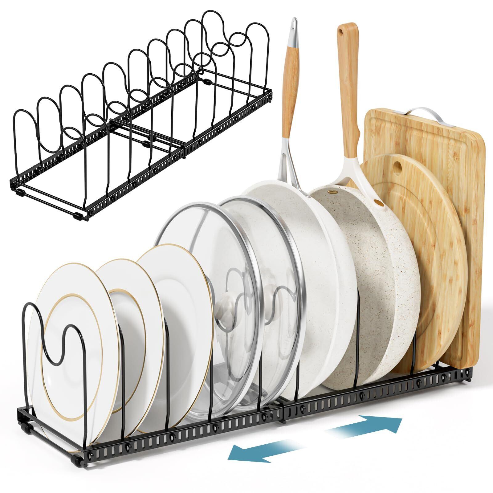 【新着商品】伸縮式 フライパンスタンド 鍋蓋スタンド フライパンラック 可分離 調理器具収納 鍋蓋・まな板・フライパン立て 鍋収納 鍋蓋置き お皿立て キッチン収納 (黒) | SmartLiving+
