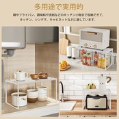 ■【多目的に使える!】シンク下に収めることで、キッチン全体をすっきりさせ、さらにトースターやレンジを置くラックとしても最適です。家庭の食事準備を快適にし、キッチンの作業効率を向上させるアイテムです。
