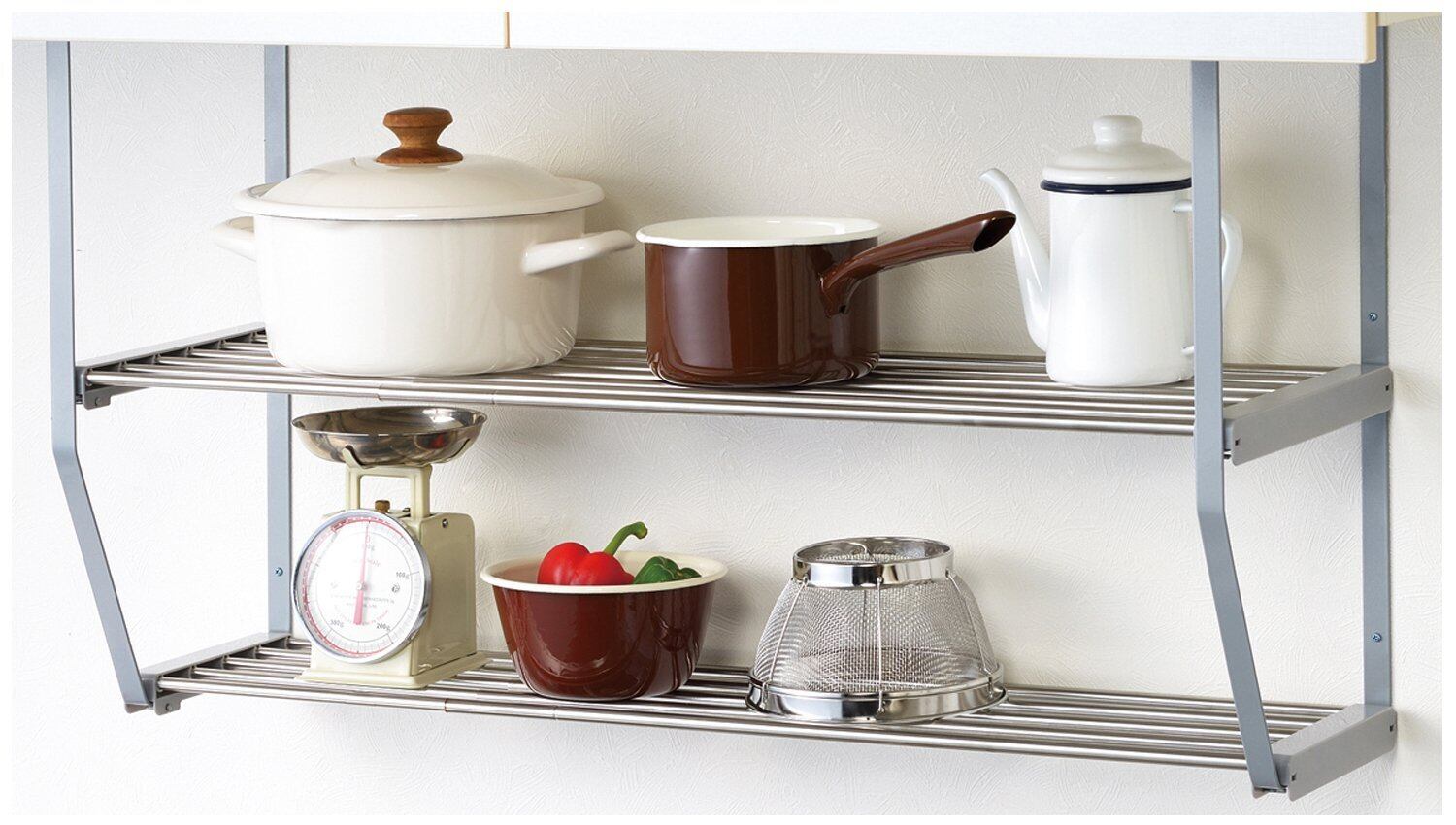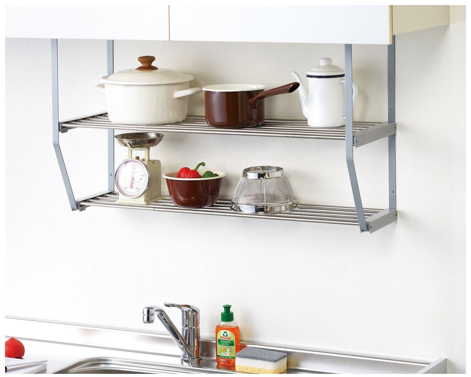 ●サビにくいステンレス●ネジ止めでしっかり固定できるネジ止めタイプ●棚幅約575~900mmまで伸縮可能●壁やボード、吊戸棚などに取り付け可能!