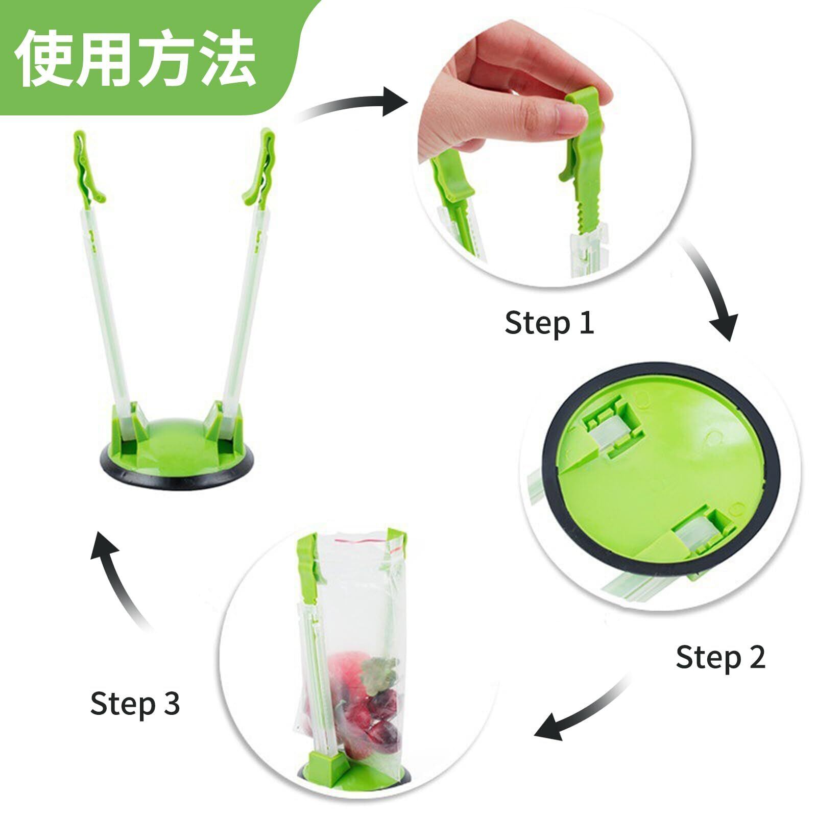 【高さ調節可能】2本のアームは高さ調節ができ、さまざまなサイズの保存袋に対応。大きな冷凍バッグから小さなスナック袋まで使い回し可能。