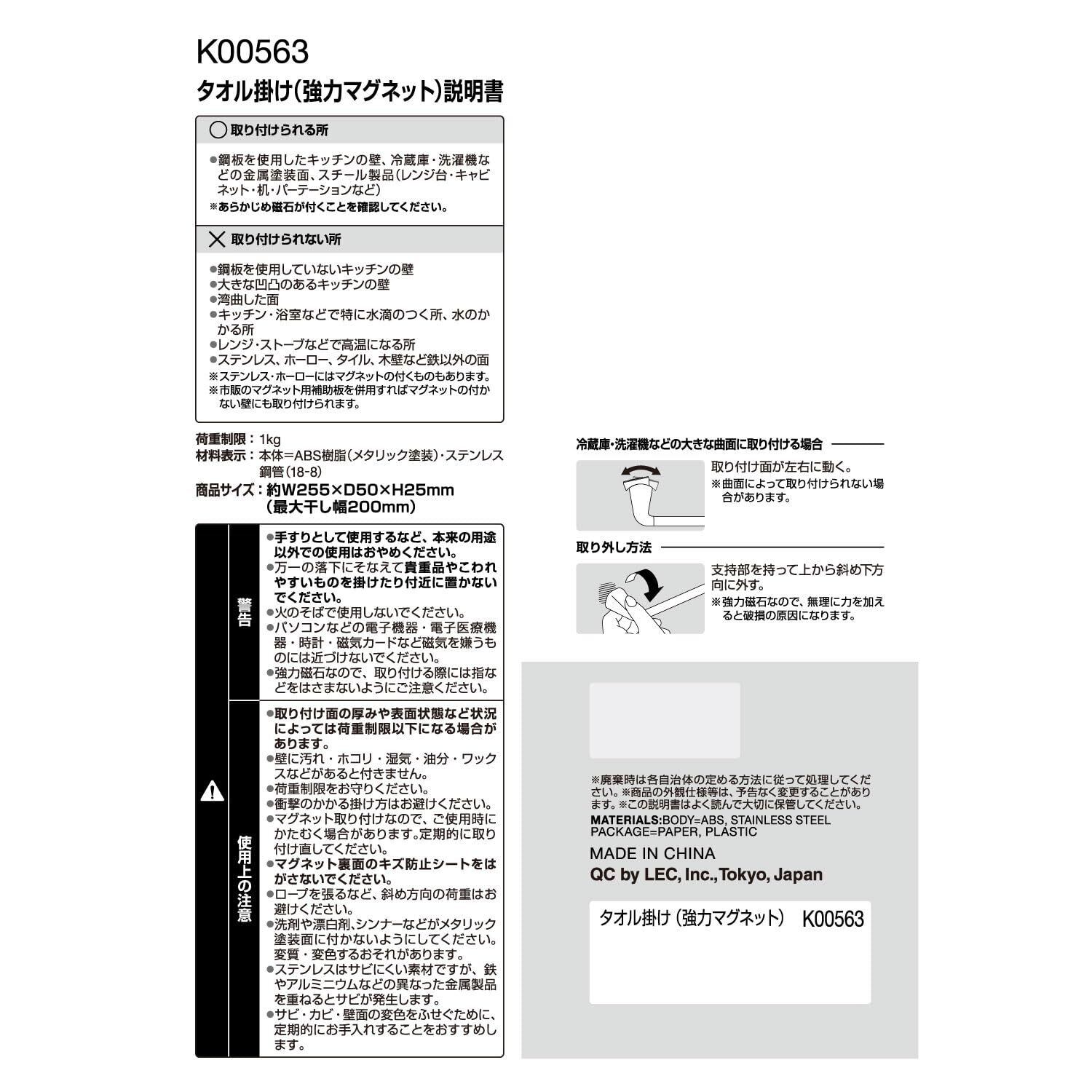レック タオル掛け コンパクト (強力マグネット) 耐荷重1kg サビにくいステンレスパイプ