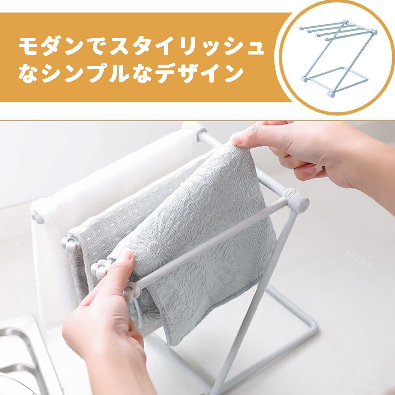 PAVIKE 布巾ハンガー 布巾ラック 布巾掛け 折りたたみ式 ふきん掛け タオル掛け 布巾干しスタンド 布巾収納ラック 水切りラック キッチン用 収納ラック 多機能 便利