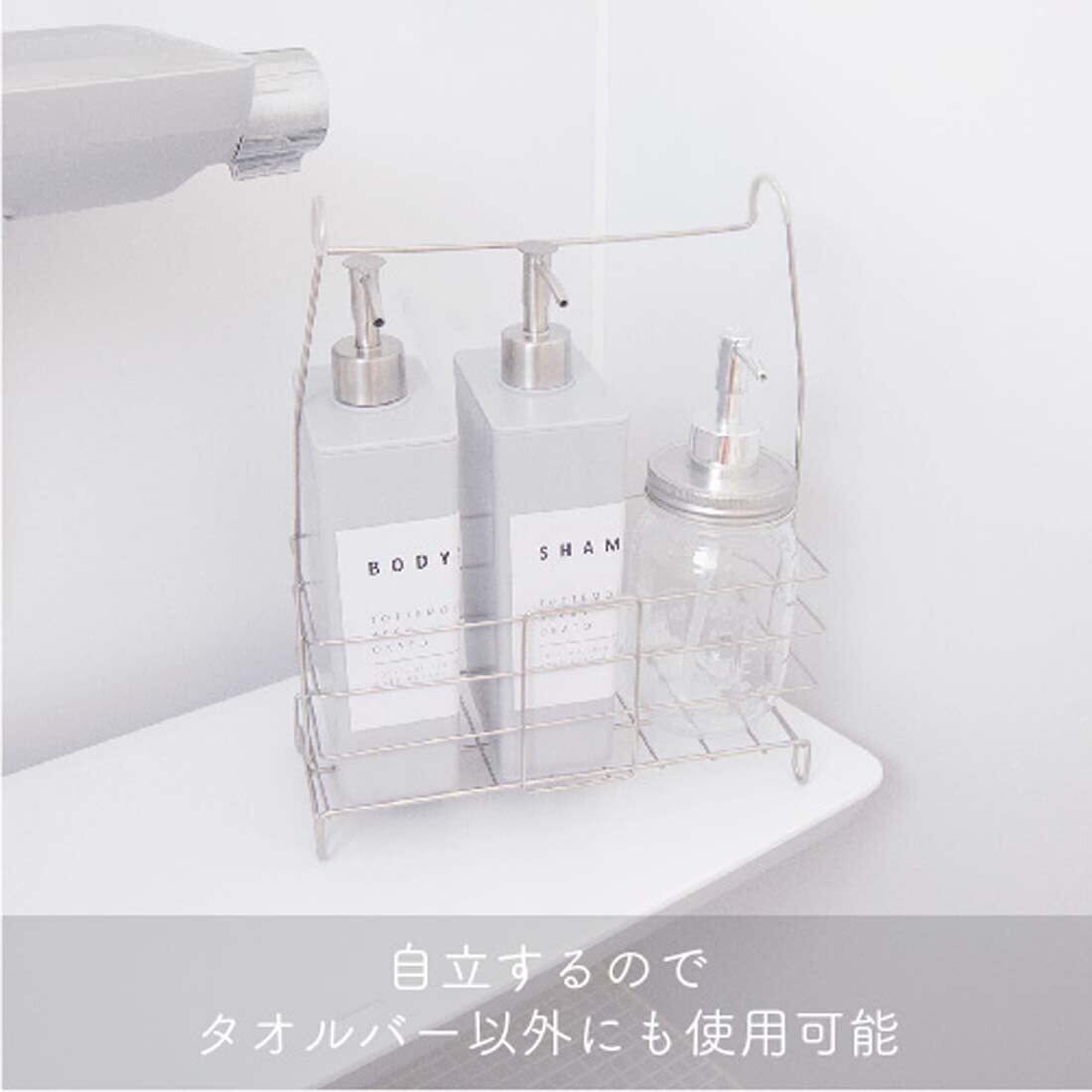 タオルバーにつるすだけで収納力がアップするステンレスバスケット●吊るすだけで取り付け簡単●フック部分にカバーがついているのでズレにくく、タオルバーの傷防止に●下部のワイヤーにタオルバーバスケットを吊るして連結したり、タオルを干すことが可能●S字フックやハンギングピンチなどを吊るして、スポンジ等のお掃除道具も保管できる●水切れ良くヌメリにくいので、お手入れが楽