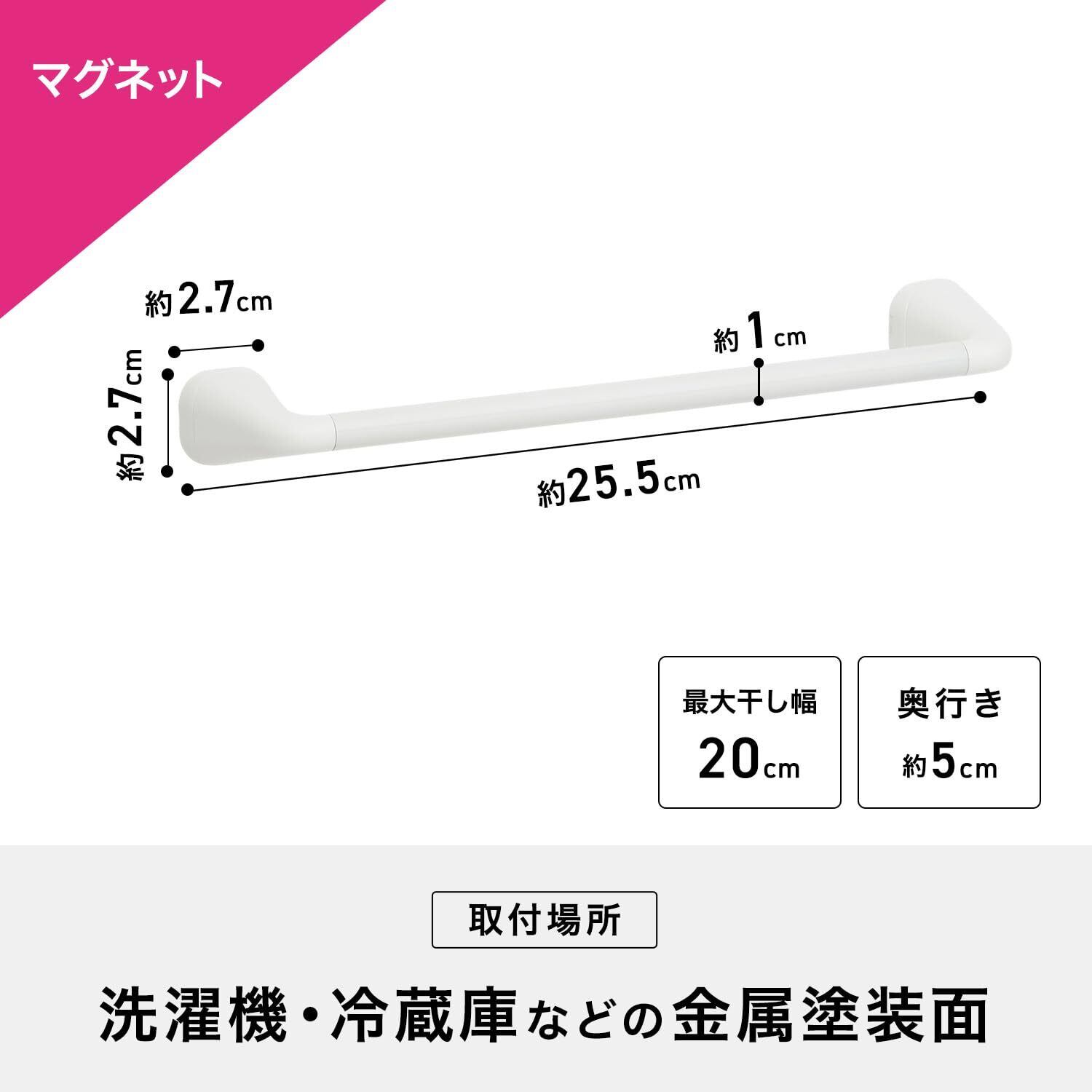 【新着商品】強力 マグネット タオル掛け ミニ 全長 25.5cm(干幅20cm) 耐荷重1kg 曲面取付け対応 キズ防止シート付き ホワイト