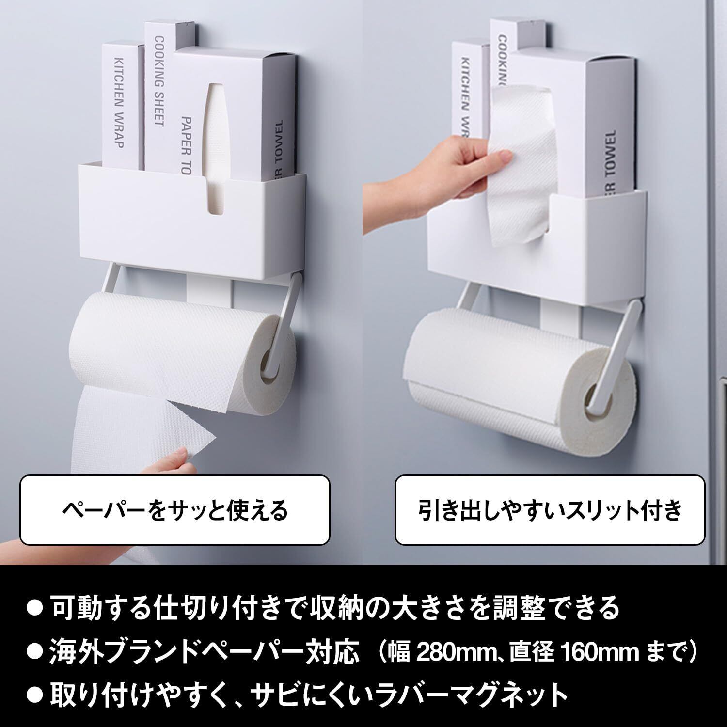 ■【大型ロールペーパー対応!】耐荷重2kgの設計により、従来のキッチンペーパーだけでなく、海外製の大判ロールペーパーにも対応しています。家族の食事やパーティー準備に大活躍です!