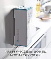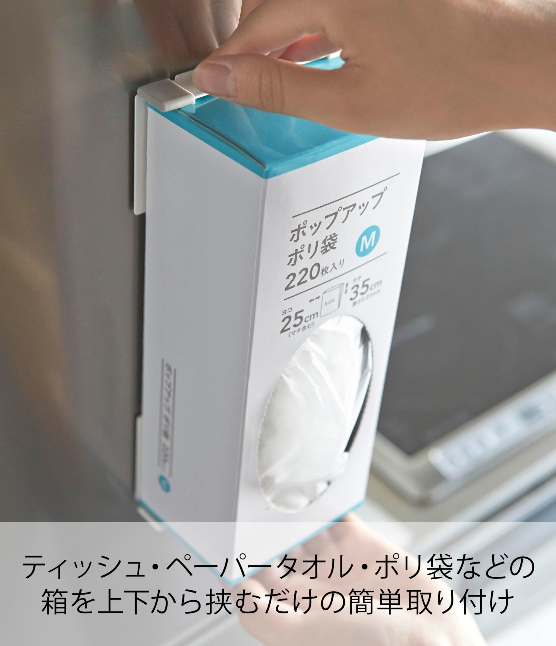 ポリ袋・ペーパータオル・ティッシュ箱をはさんで磁石で冷蔵庫側面などに簡単取り付け!
