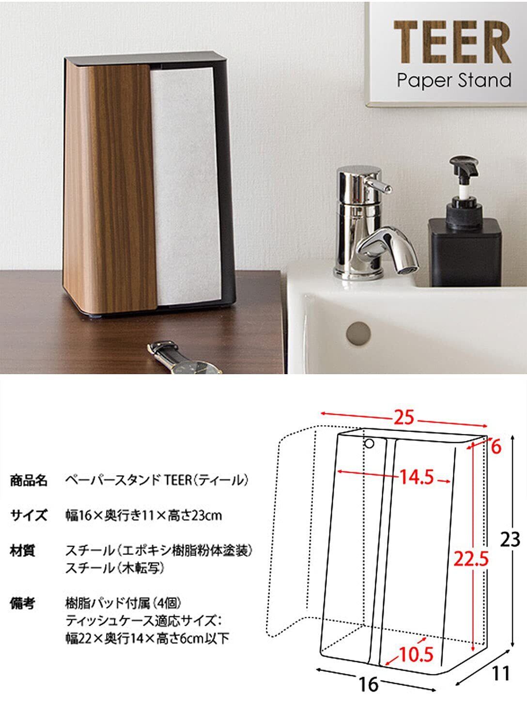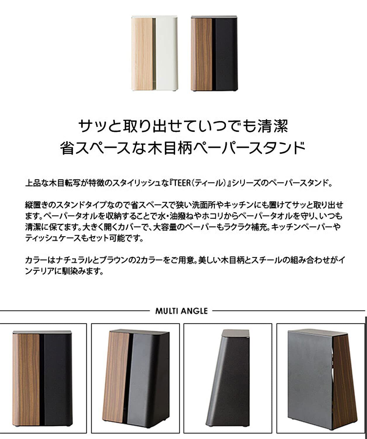 上品な木目転写が特徴のスタイリッシュな『TEER(ティール)』シリーズのペーパースタンド。
