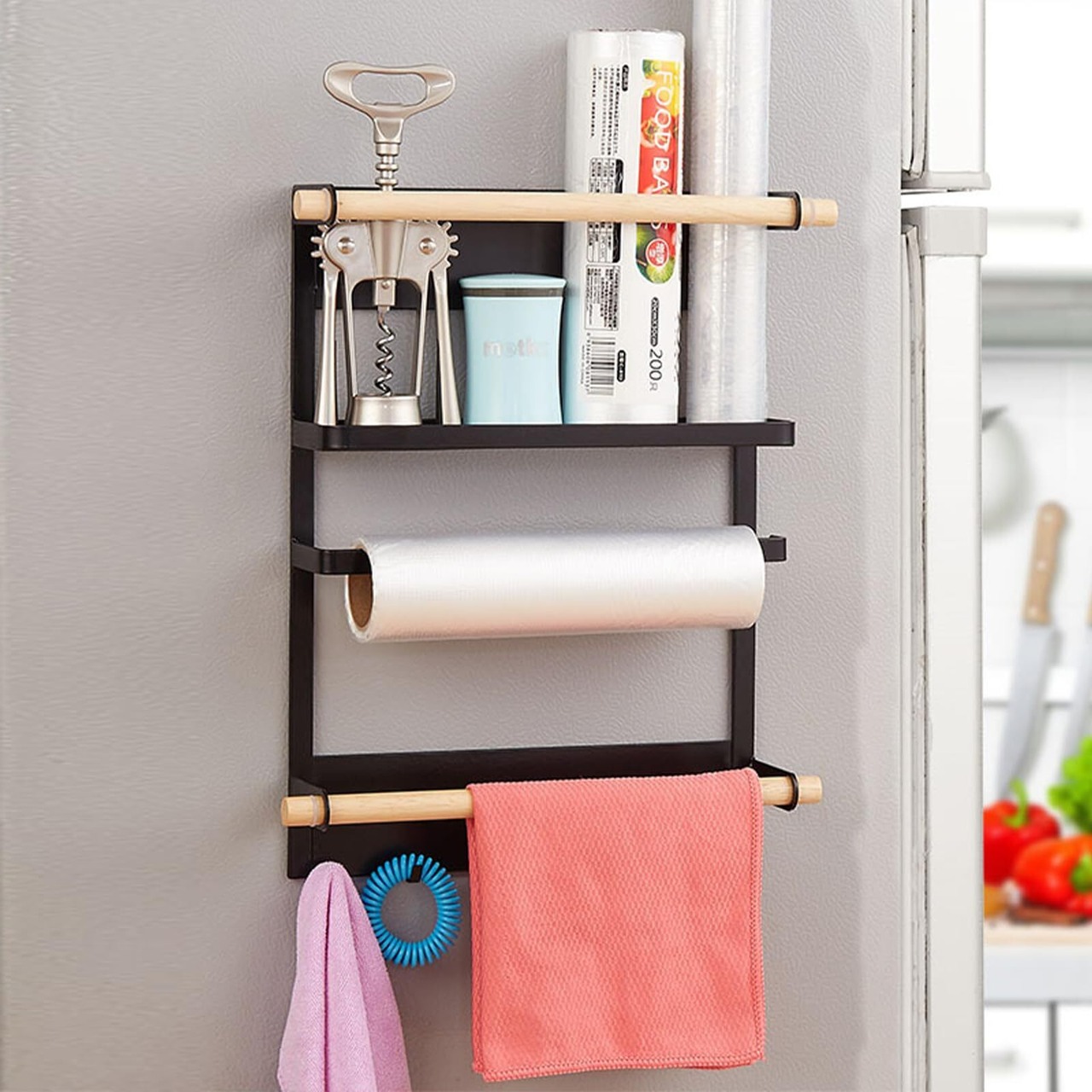 マグネット 冷蔵庫サイドラック プレート キッチンペーパータオルホルダー 冷蔵庫横 磁石 キッチン収納 ラップホルダー キッチン雑貨 キッチンペーパー 収納 ペーパータオルホルダー (ホワイト)