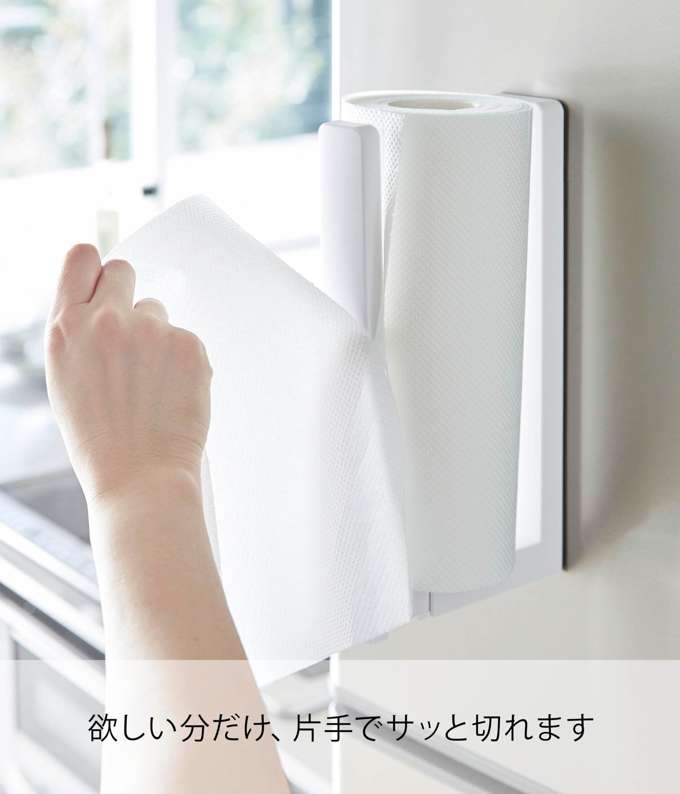 山崎実業(Yamazaki) ストッパー付 マグネット キッチンペーパーホルダー ホワイト 約W5×D10.2~17.5×H24.5cm タワー tower 片手で切れる 3398