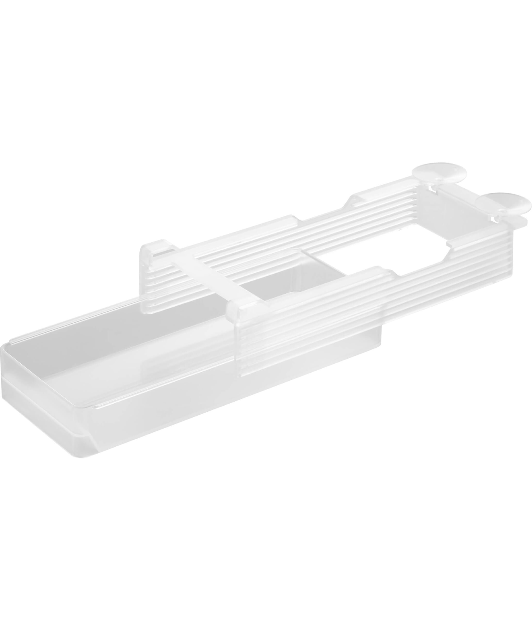 収納する物や隙間に合わせて高さを7段階に調節できる棚下収納ラックです。棚の奥まで無駄なく使えるロングタイプ。スライド棚の接続部があっても取り付け可能です。設置は、引っ掛け部を棚板に差し込み、吸盤で固定するだけの簡単仕様。引っ掛け部が短いので、棚板上も有効に使えます。幅11cmの「冷蔵庫中シリーズ(別売)」がピッタリ収まる設計で、空間を有効活用できます。引き出しは落下防止構造なので、安心して使用可能。スライスチーズやハムなど高さの低い食品から、ヨーグルトやゼリーなど高さのある食品まで、収納する物に合わせて高さを調節できるので、冷蔵庫の中をスッキリ整理整頓できます。