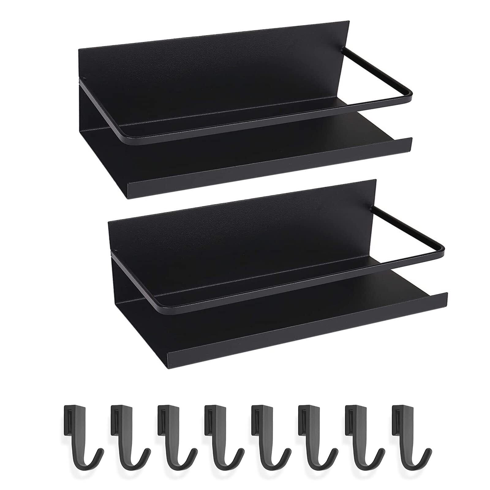 マグネットラック 冷蔵庫 キッチンラック バスルームラック マグネット スパイスラック 棚 マグネット収納 冷蔵庫ラック 洗濯機 収納 2個セット フック付き (ブラック-2個)