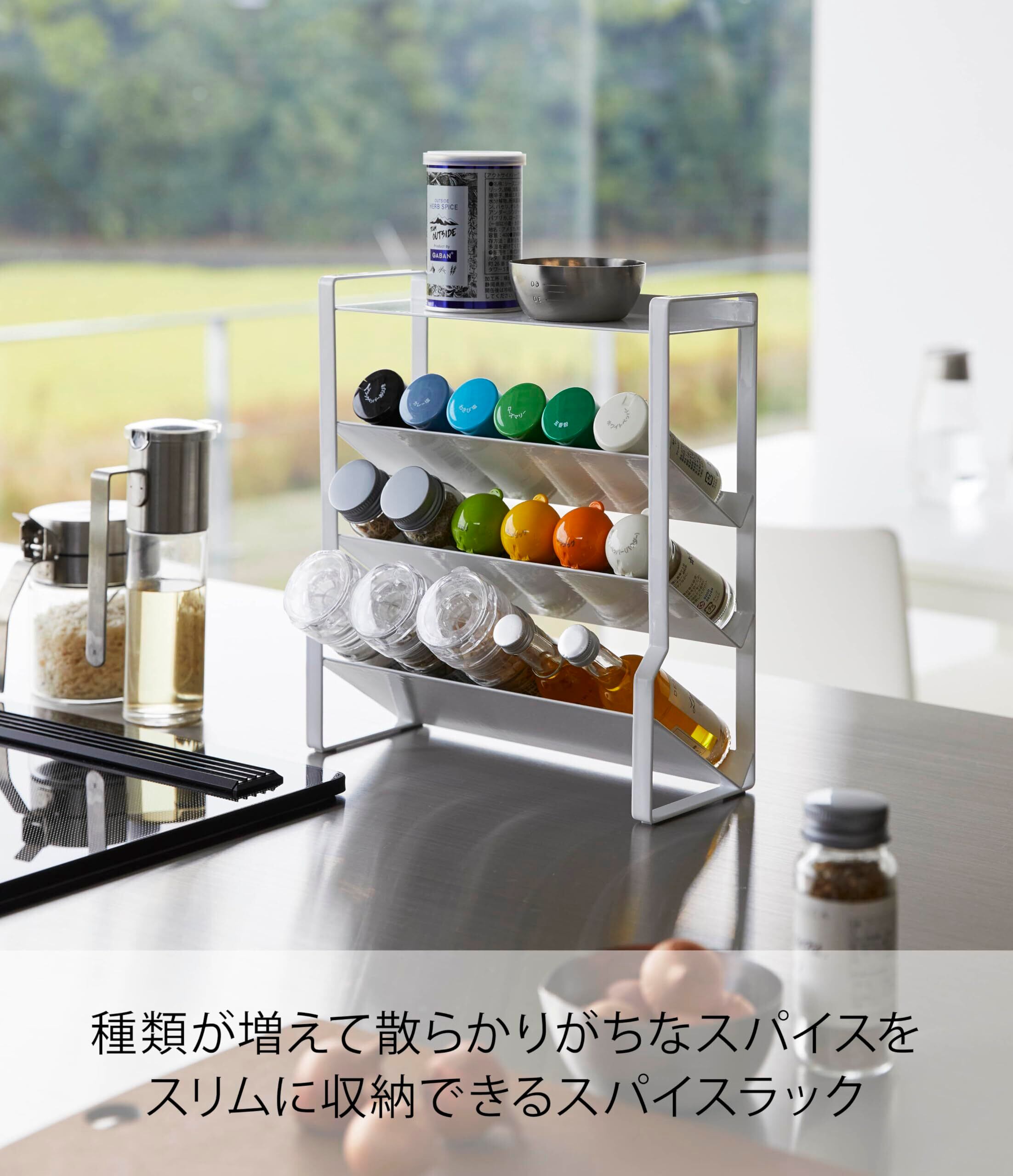 「この【山崎実業 スリムスパイスラック】を使って、機能的でスタイリッシュなキッチン空間を実現しましょう!」