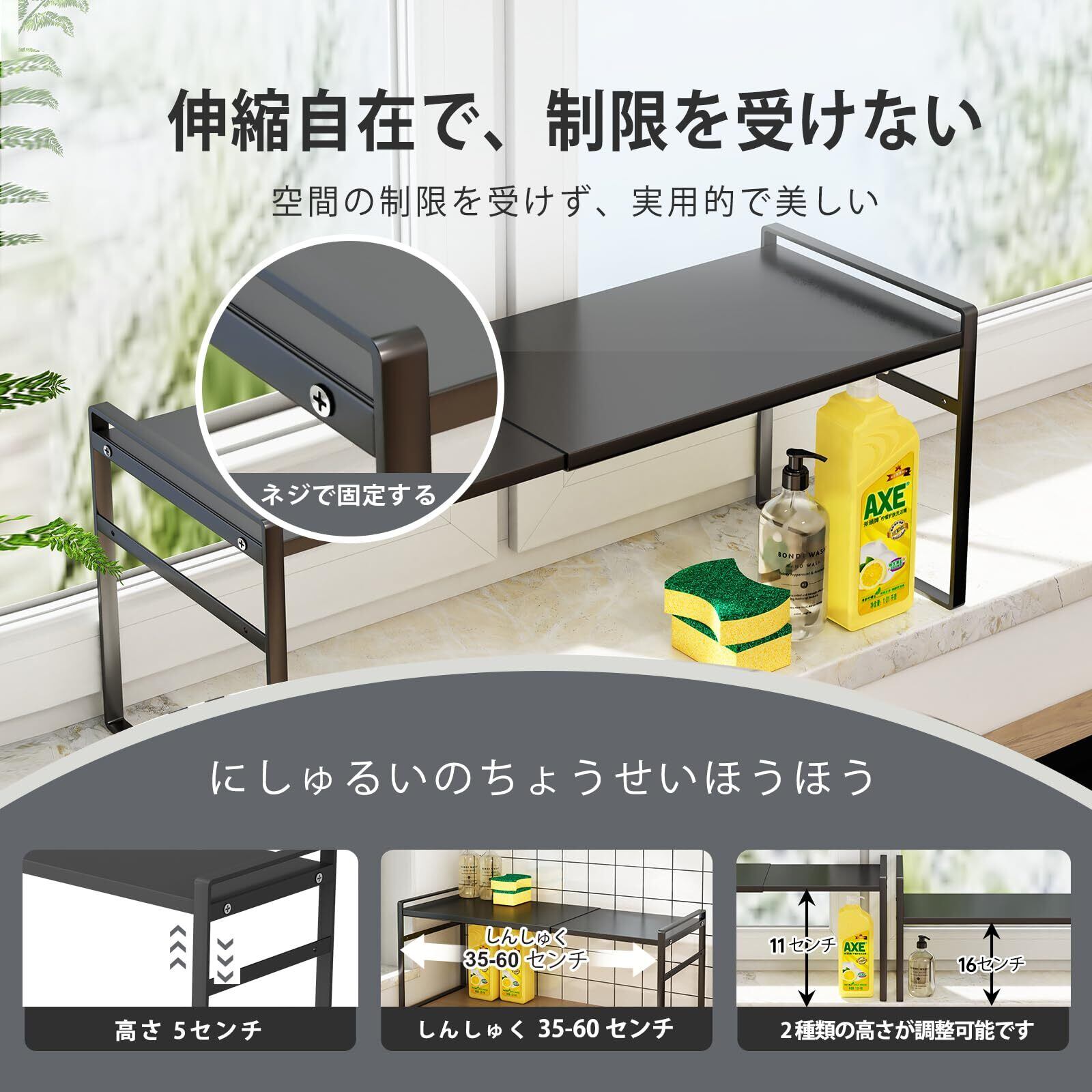 ■【簡単に拡張可能な設計!】このラックは、必要に応じてサイズを調整できるため、収納スペースを最大限に活用できます。調味料や調理器具を効率よく置けるため、毎日の料理がさらに快適になります。