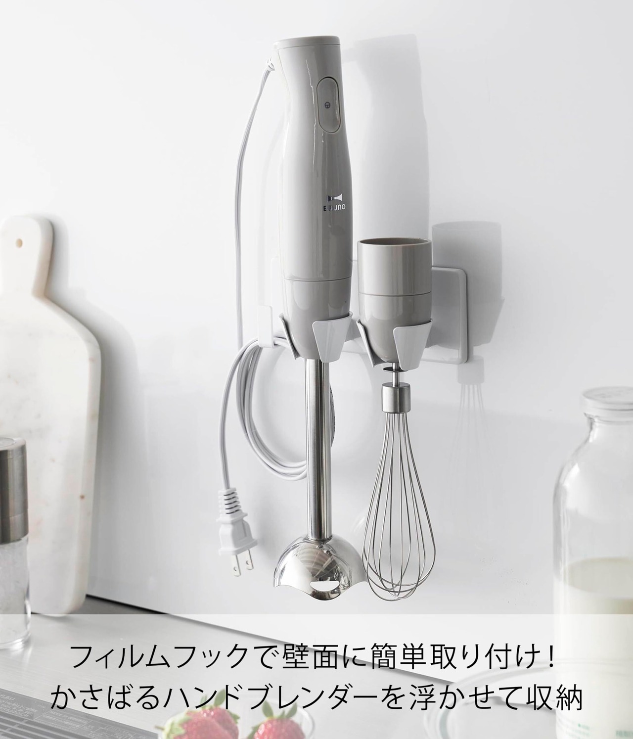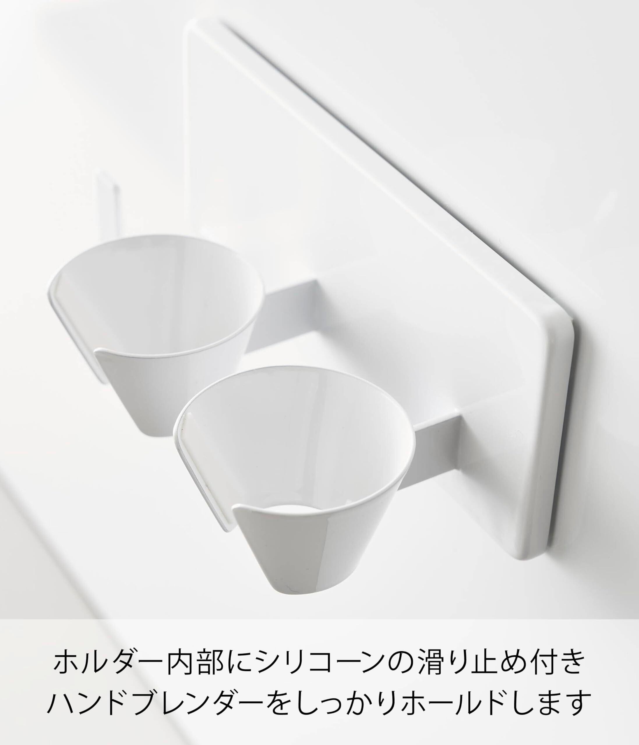 置き場所に困るハンドブレンダーを壁面に浮かせてすっきり収納できます。