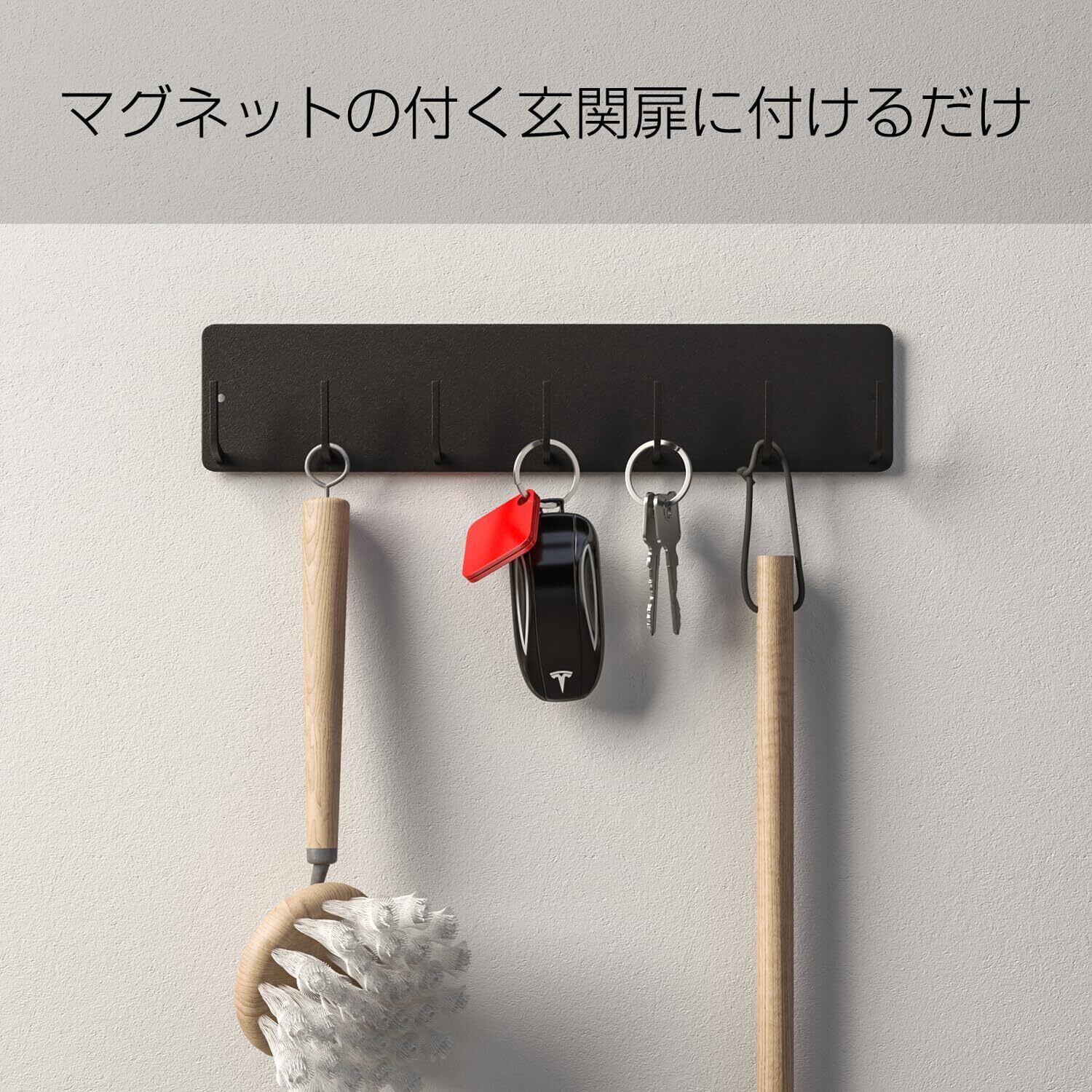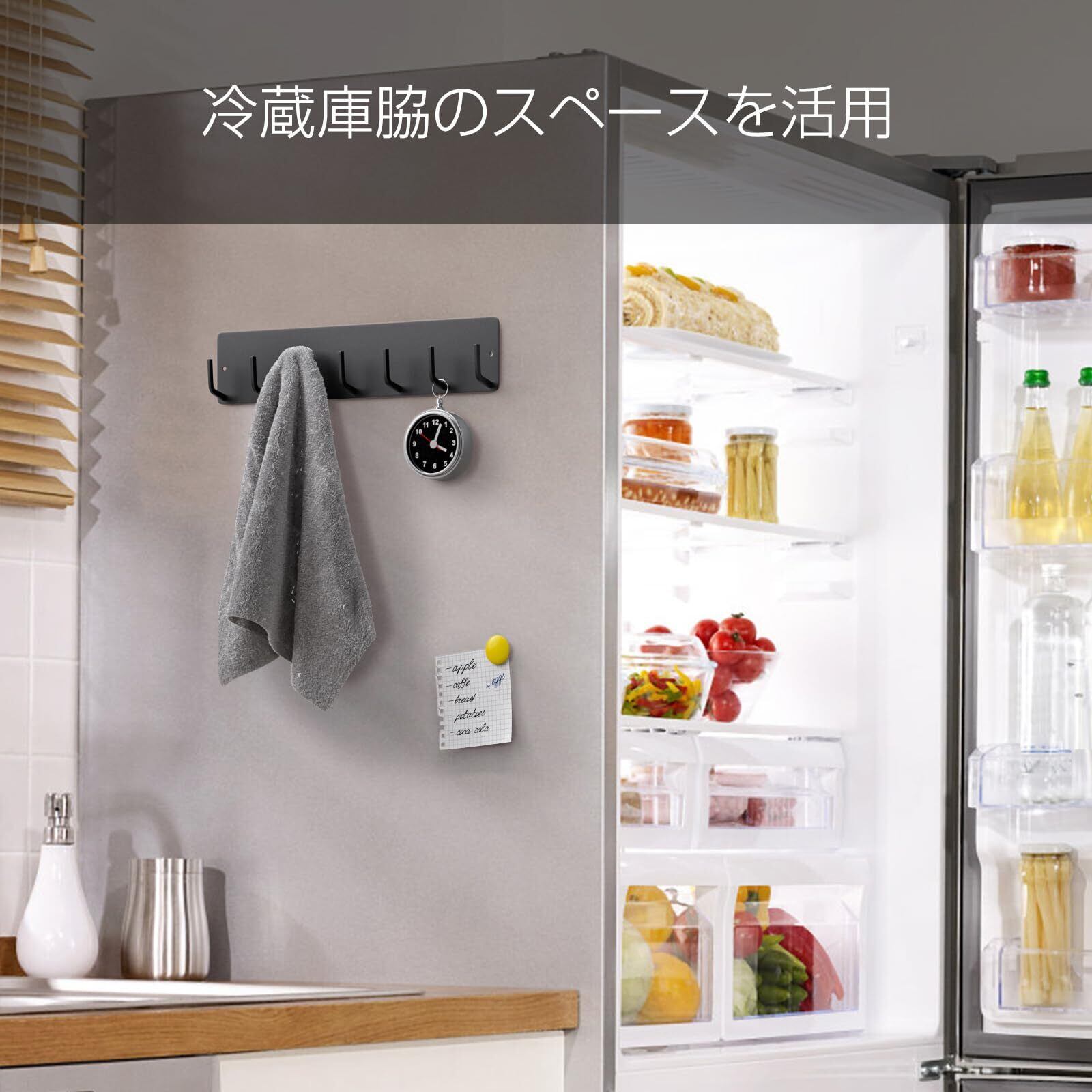 「強力で安心」フック一つあたりの耐荷重250gで、日傘、ハンカチ複数をかけても安心です。取り付け可能な壁面:マグネットが付く平らな面・スチール壁面
