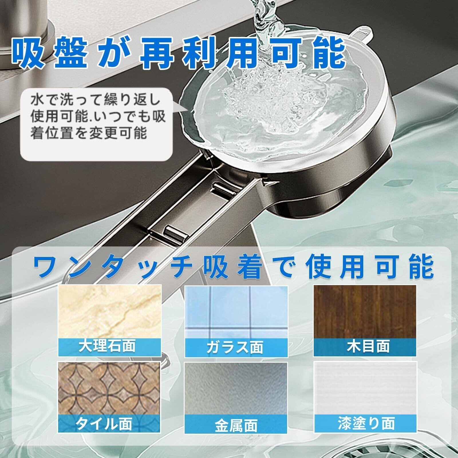 ■【簡単に取り付けできる!】吸盤式のこのフックは、穴あけ不要で取り付けが簡単です。お気に入りの場所にしっかりと設置でき、すぐにキッチンが整理整頓されます!必要な道具を手の届く場所に配置でき、調理の煩わしさを解消します!