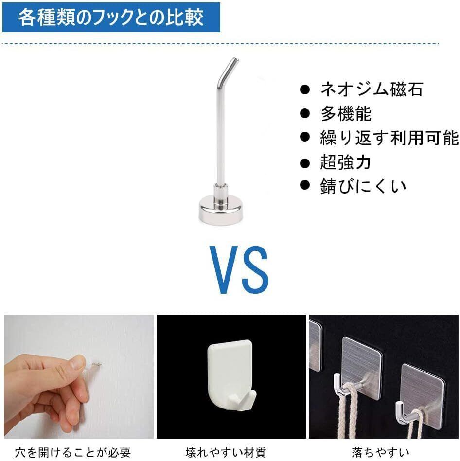 【小さいのに超強力】驚異の超強力吸着力!従来の吸盤式のフックより断然強力です。腐食&サビに強い。取り外しが簡単なマグネット仕様なのでスペースに合わせてお好みの配置に可能。