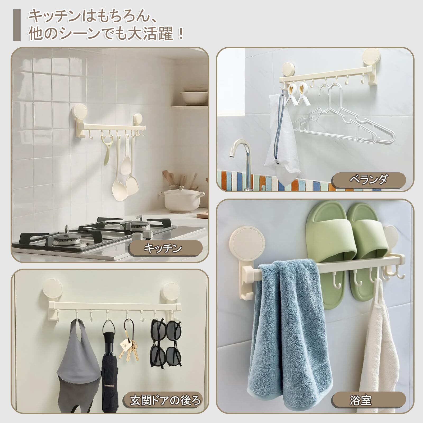 【在庫セール】Mairearn キッチンツールフック 吸盤式 超強力 キッチンラック 防水防錆 耐荷重 ダブルバー設計 可動式 鍋蓋置き 調理器具収納 穴あけ不要 壁掛け 簡単取付 (乳白色 40cm 8個フック) | SmartLiving+