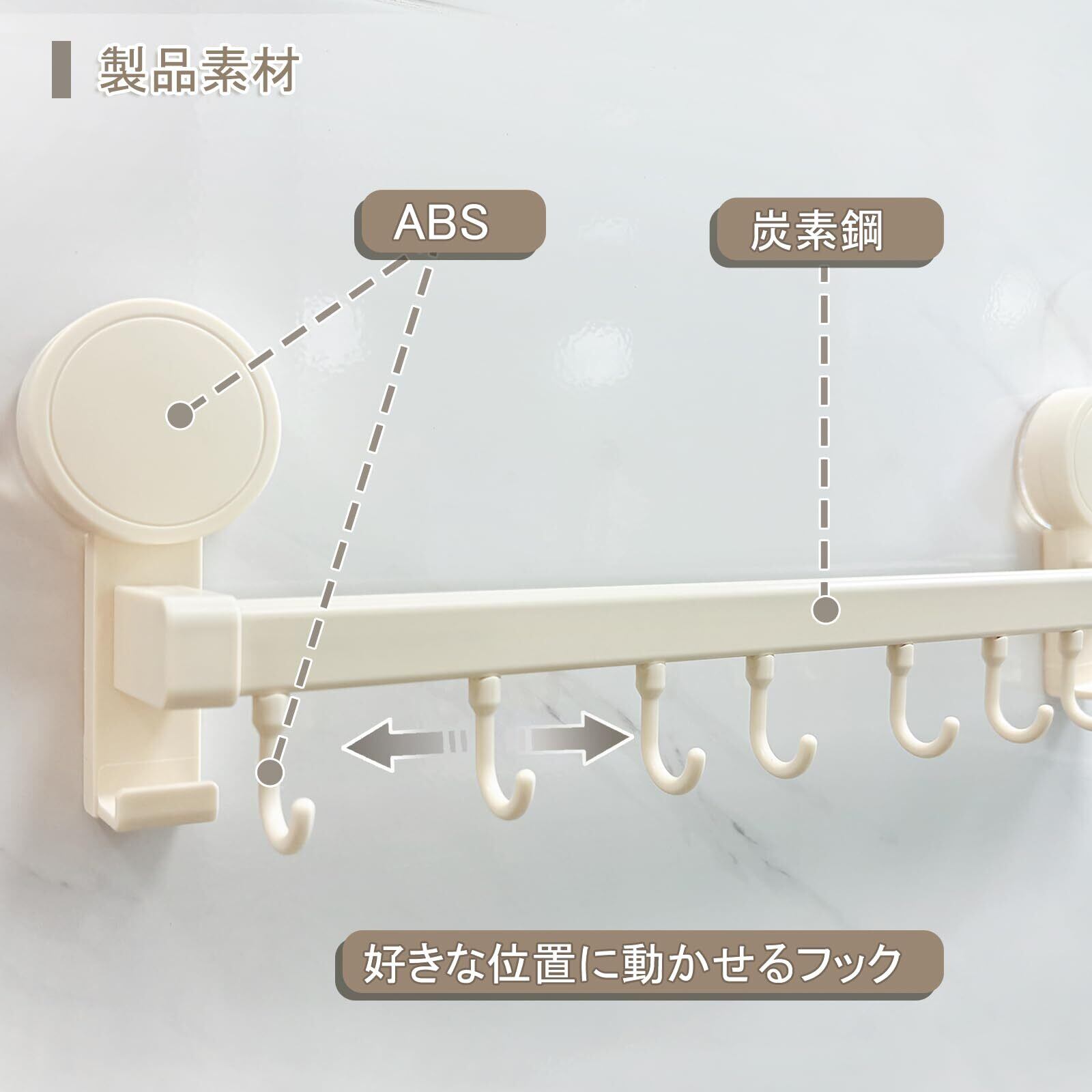 【高品質素材で長寿命】キッチンツールフックの支柱には軽量ながら強度抜群のカーボンスチール、吸盤とフックには高級感あふれるABS樹脂を採用。錆に強く、高温多湿な日本のキッチン環境でも変色・劣化しにくい耐久設計です。毎日の使用に耐える頑丈さと美しさを両立しました。