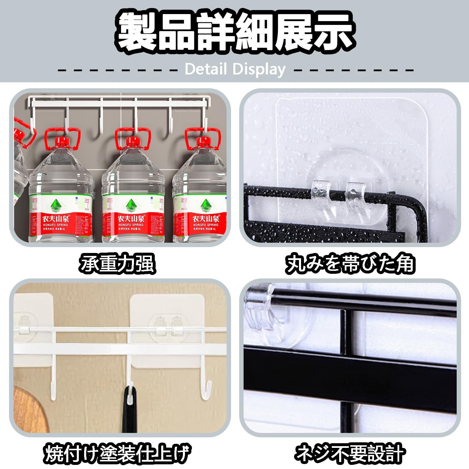 【取り付け簡単】このウォールフックは強力な粘着テープで簡単に取り付けられます、穴あけやネジ、工具は一切不要で、わずか数秒で取り付け可能です、取り付け後、壁に傷をつける心配もありません、まずは滑らかな表面をきれいにし、粘着バッキングを希望の位置に貼り付けるだけで、キッチンツールフックは24時間後に使用可能になります