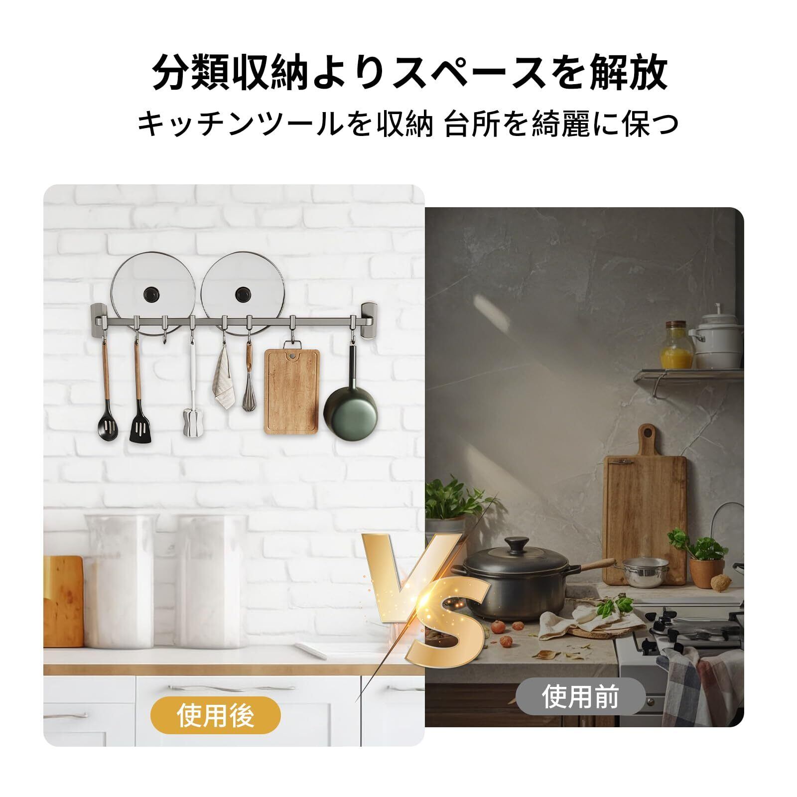 【多様な用途】このフックラックは包丁、鍋蓋などのキッチンツールに対応だけでなく、タオル、服、バッグなどの日常用品にも対応できます。キッチン、バスルーム、ベッドルーム、リビングルームなど多様な場合に使用することができます。
