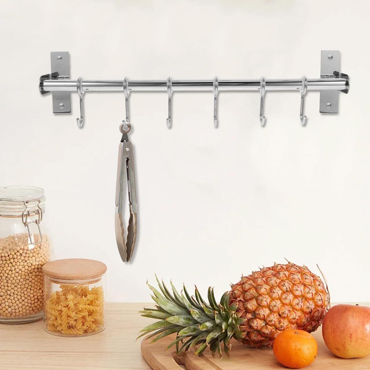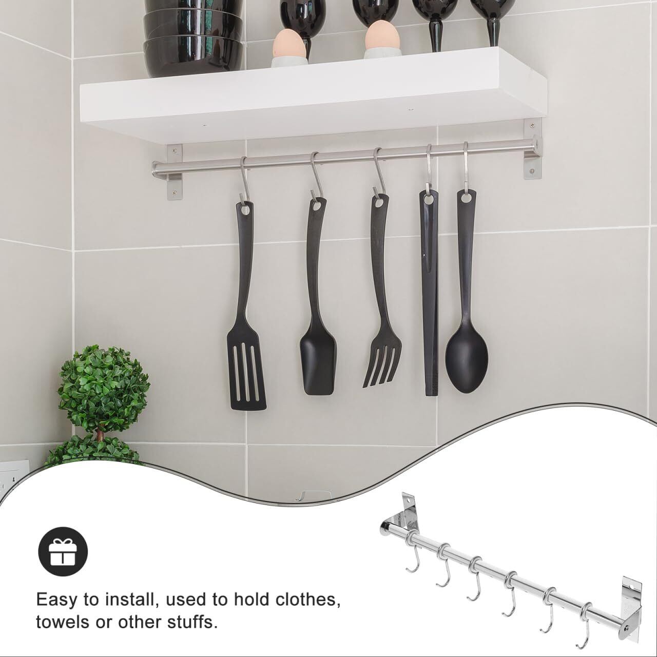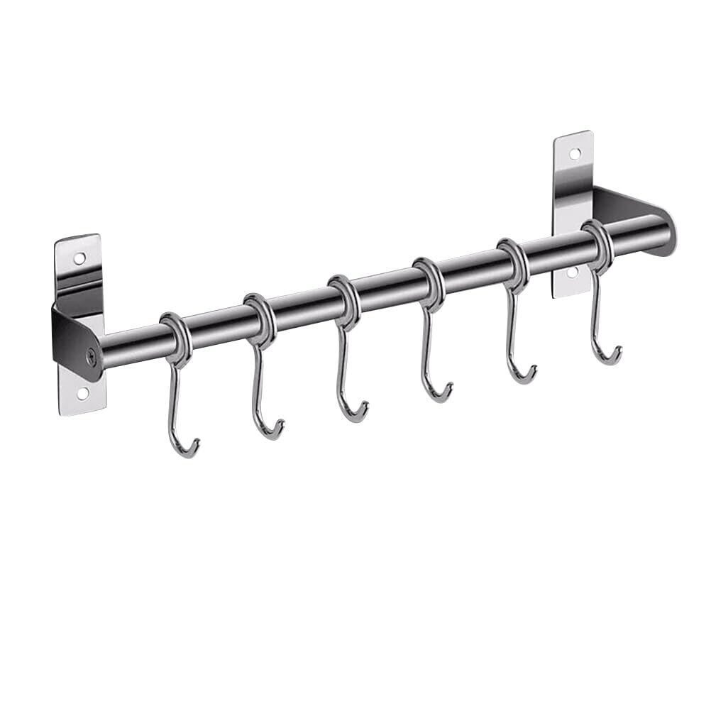 【在庫処分】LIOOBO キッチンツールフック 40cm 壁掛け式 強力固定 ステンレス鋼 キッチン お風呂 シャワーラック 6個フック