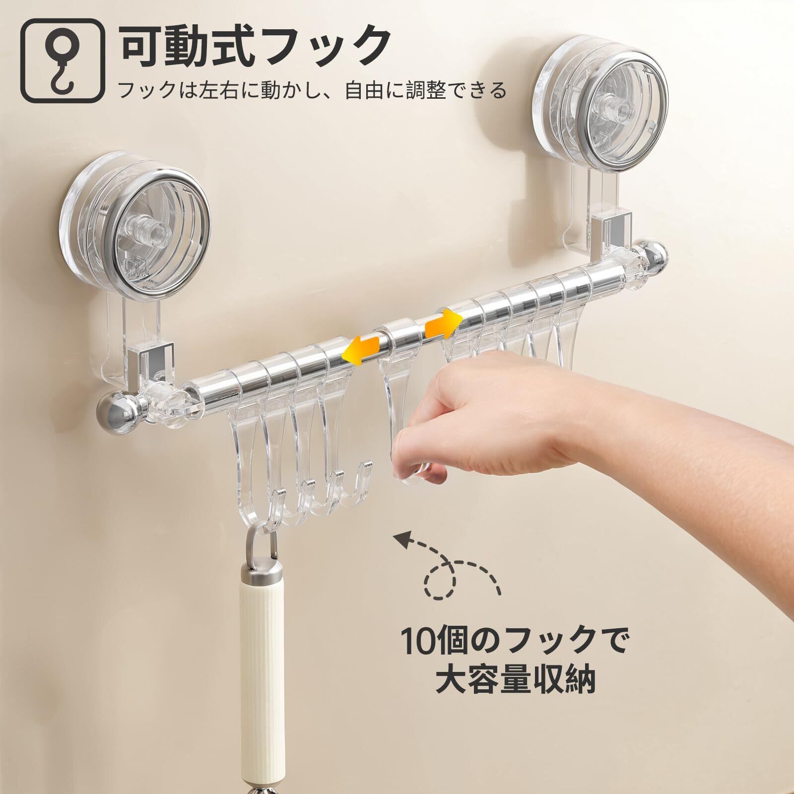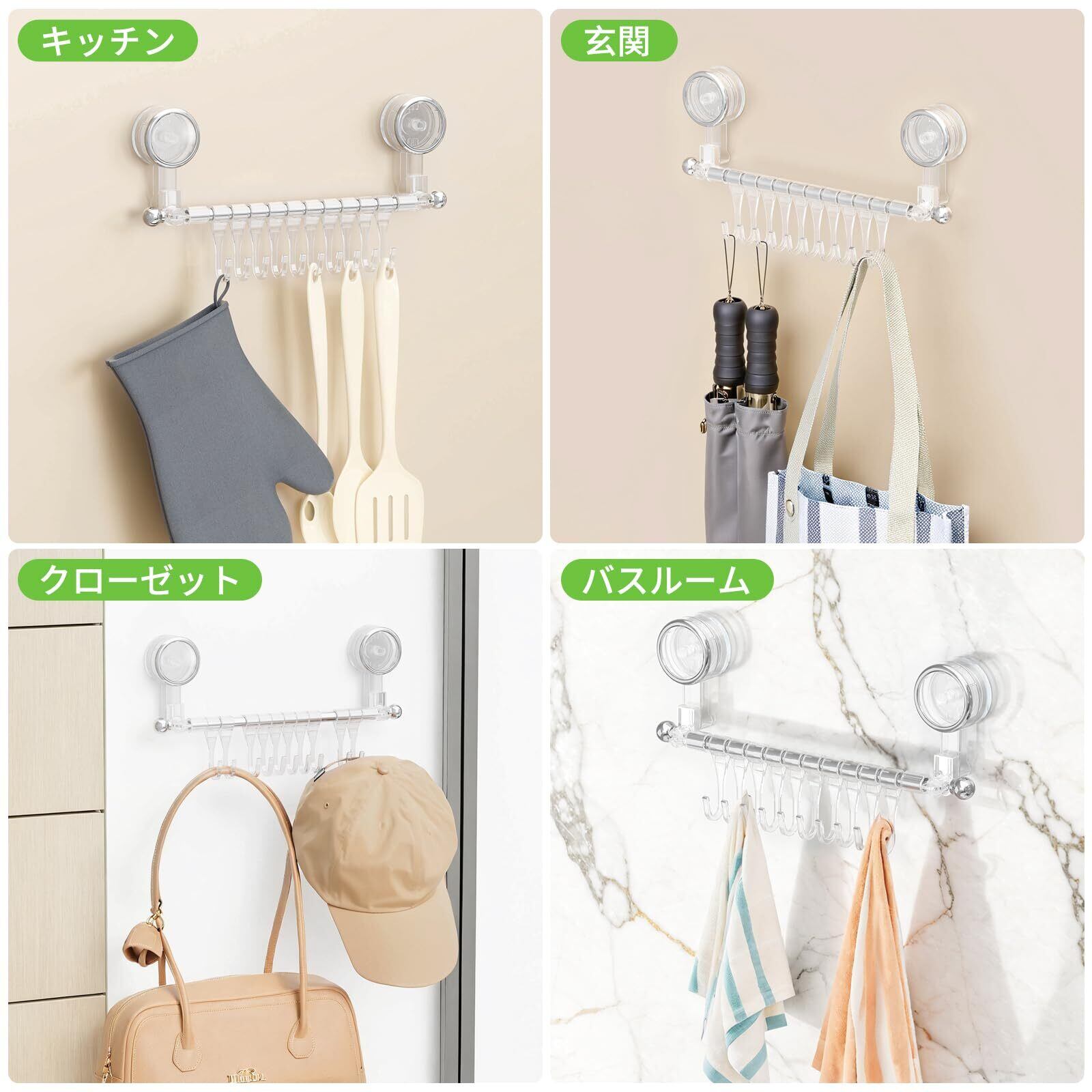 【調整可能なフック】吸盤キッチンツールフックの10個のフックは左右に移動でき、自由に間隔を調整できます。 吸盤部のスイベルジョイントは180°回転可能で、キッチンの狭いコーナーや隅に適しています。 有効スペースを合理的に利用して効率よく収納できます。