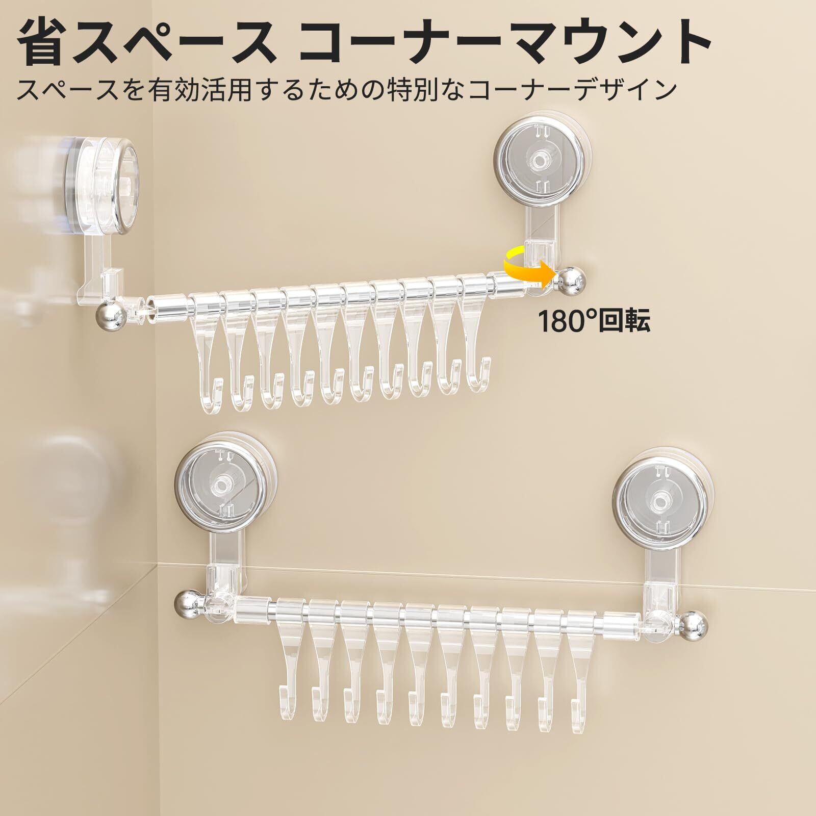 Swioled キッチンツールフック 強力吸盤 キッチン収納ラック 回転可能 コーナー対応 調理器具 収納 ABS製 防水 防錆 台所 バスルーム 浴室用 10個可動式フック付き 多機能 壁掛けラック 浮かせる収納 穴あけ不要 壁傷つけない クリア