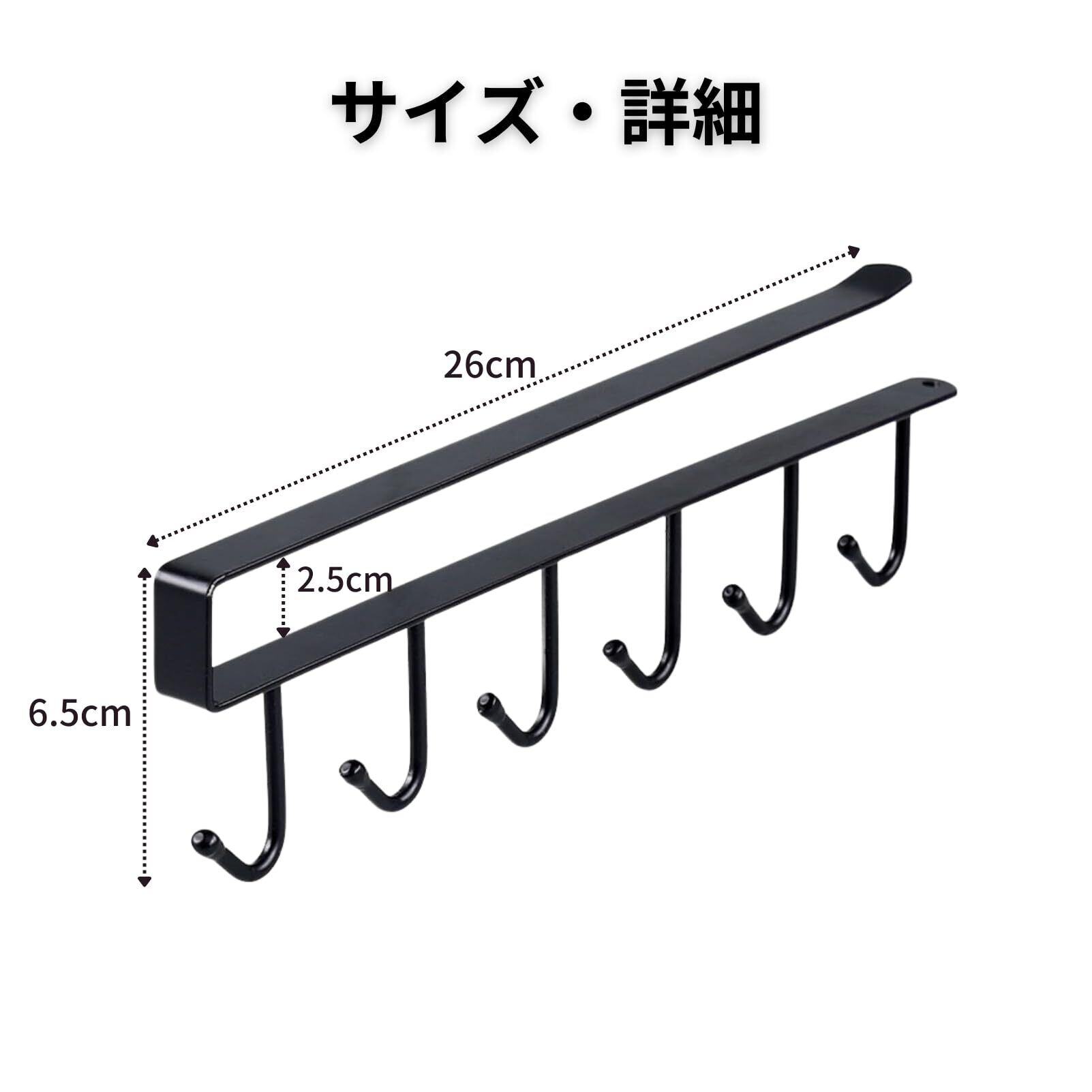 【吊戸棚に差し込むだけの簡単設置】穴あけ・ネジ止め一切不要!吊り下げるだけで戸棚下に6連フックを簡単に設置できます。女性でも工具不要ですぐに使えます。