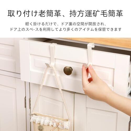 ■【簡単取り付け!戸棚のドアを有効活用!】このフックは、特別な工具を使わずに戸棚のドアに簡単に取り付けられます。ドアに引っ掛けるだけで、誰でも手軽に利用できるので、賃貸住宅でも安心してお使いいただけます。使い方は簡単、あなたの生活をサポートします!
