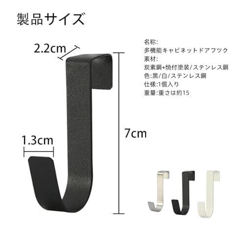 【製品仕様】:ドアハンガー6個組,7cm*2.2cm*1.3cm,カラー:ブラック ホワイト 原色。厚さが約1.5~2cmまでの戸棚のドアや折れ戸に使用可能、扉と上部の隙間は約2mm以上が必要です。